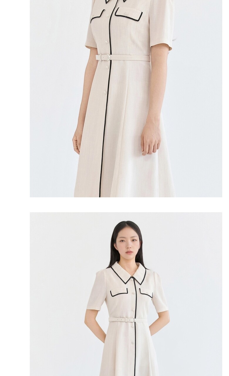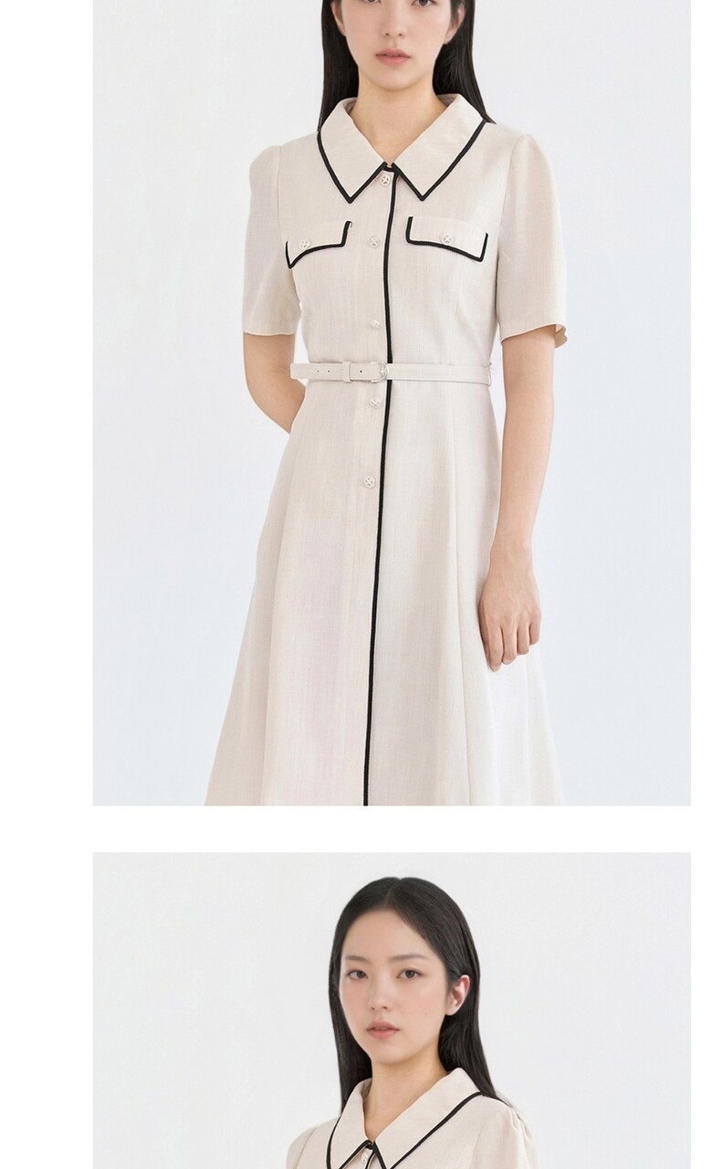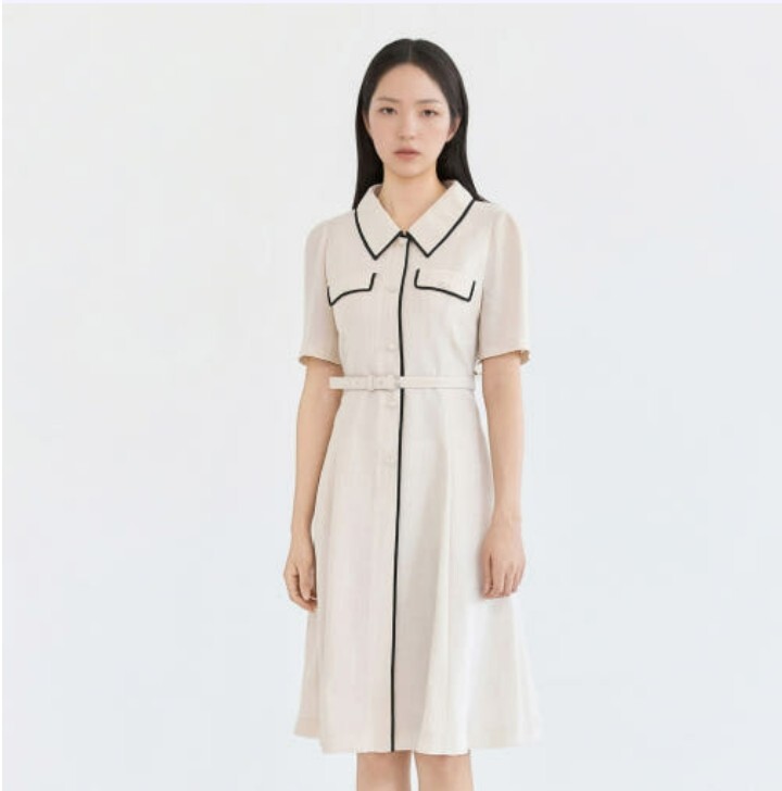 오픈카라 디자인으로 클래식하며|*| 페미닌한 무드의 원피스입니다.