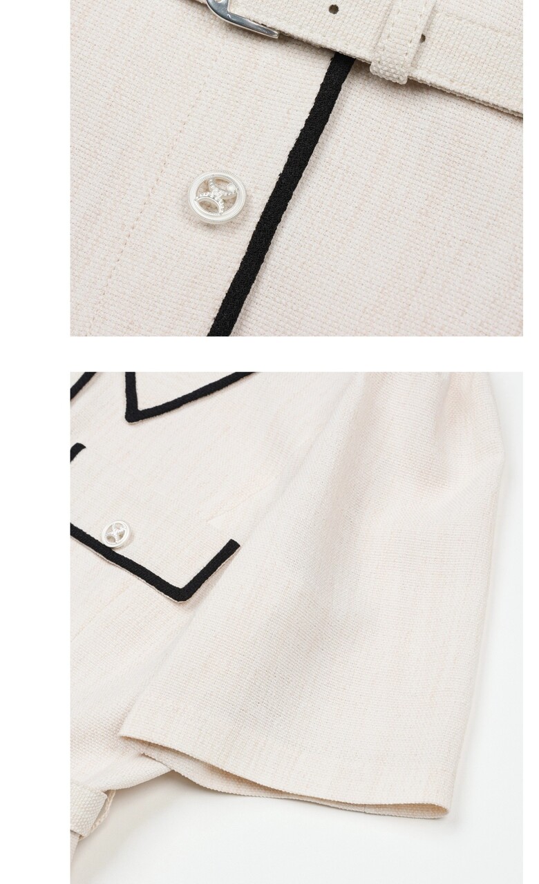 옵션 벨트로 웨이스트 라인을 잡아주어 더욱 슬림하게 연출됩니다.