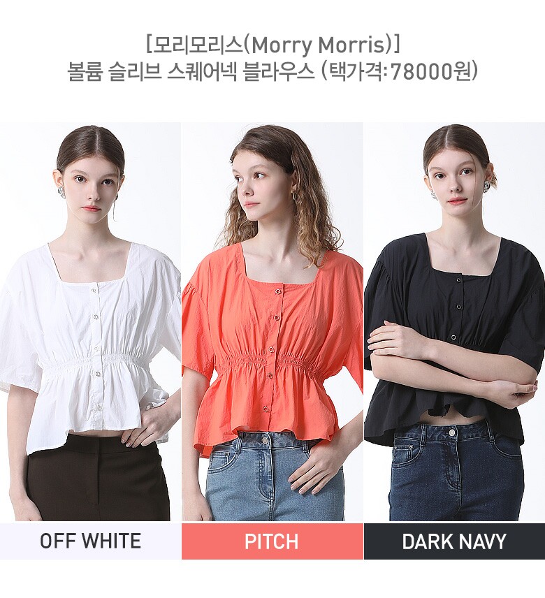 [모리모리스(Morry Morris)] 볼륨 슬리브 스퀘어넥 블라우스 (택가격: 78000원)