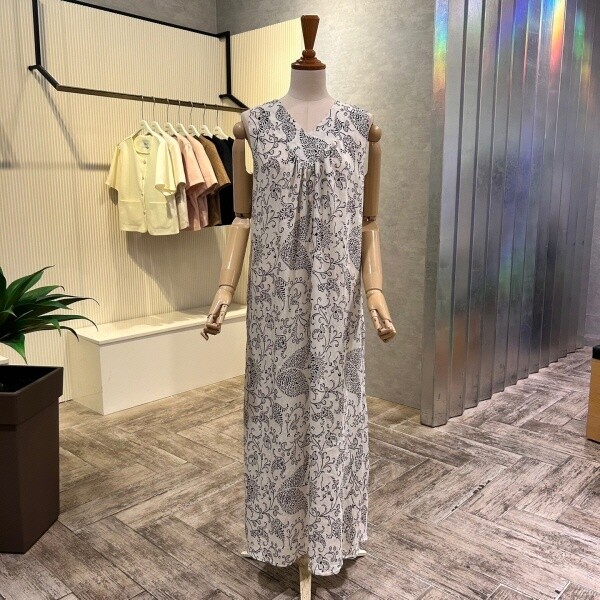 2025년 S/S 신상 V넥 패턴 민소매 롱 원피스 입니다.