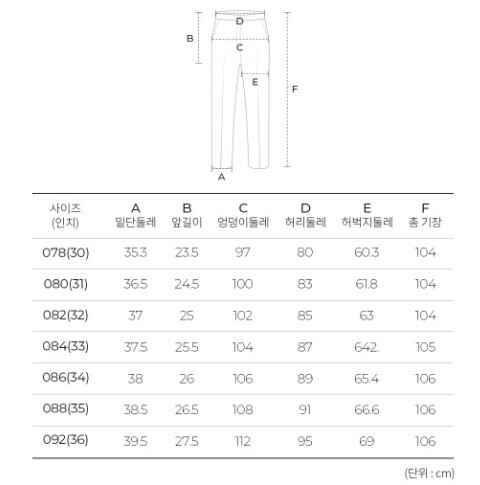 사이즈 : 78(29~30),80(31),82(32),84(33),86(34),88(35),92(36)