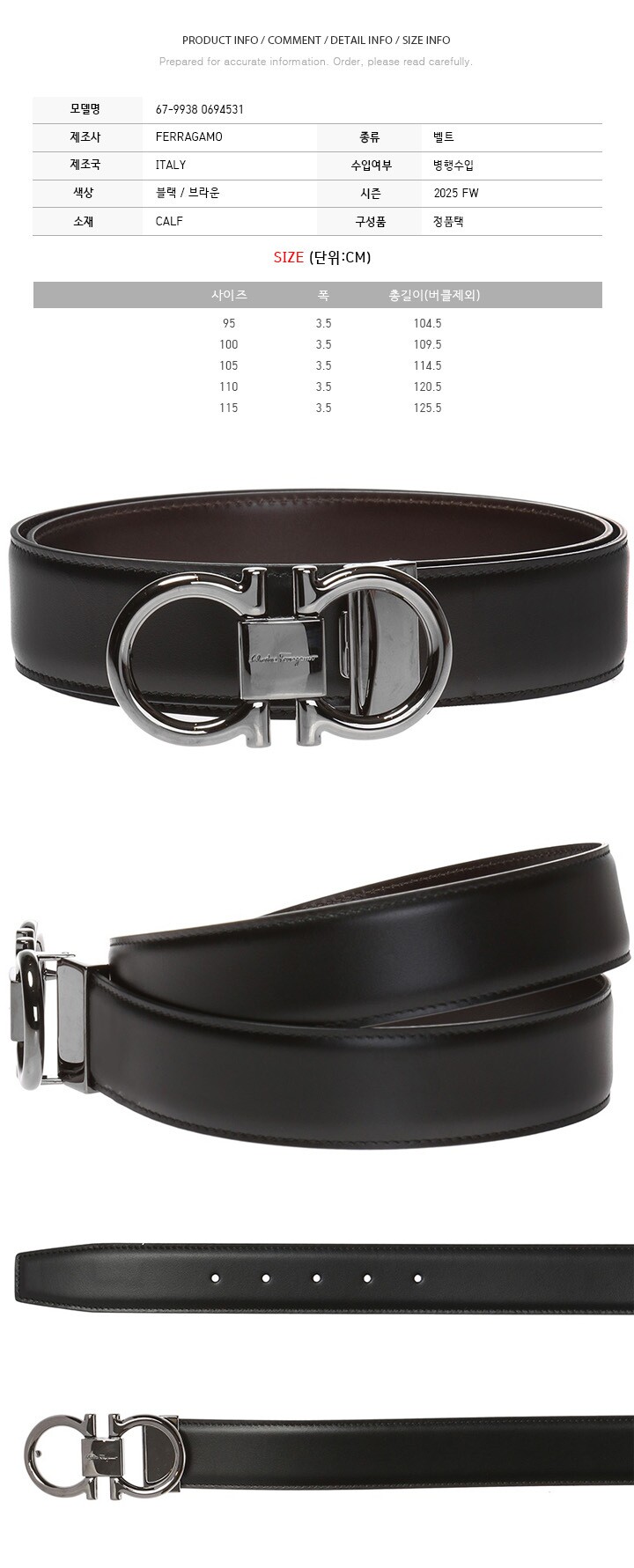 페라가모 25FW 더블 간치니 양면 유광 벨트 블랙브라운 67-9938 0694531
