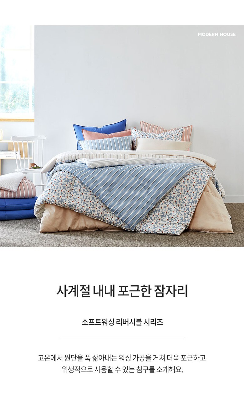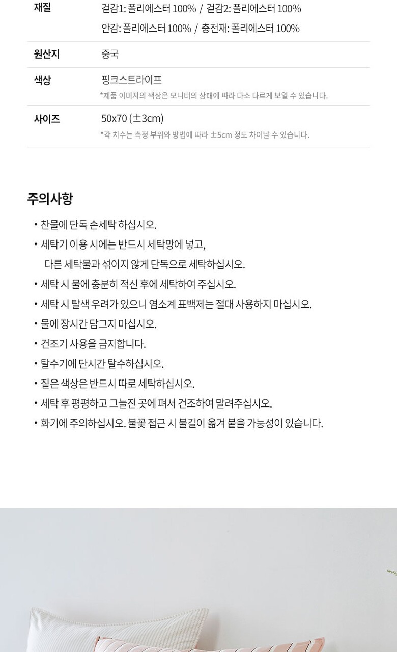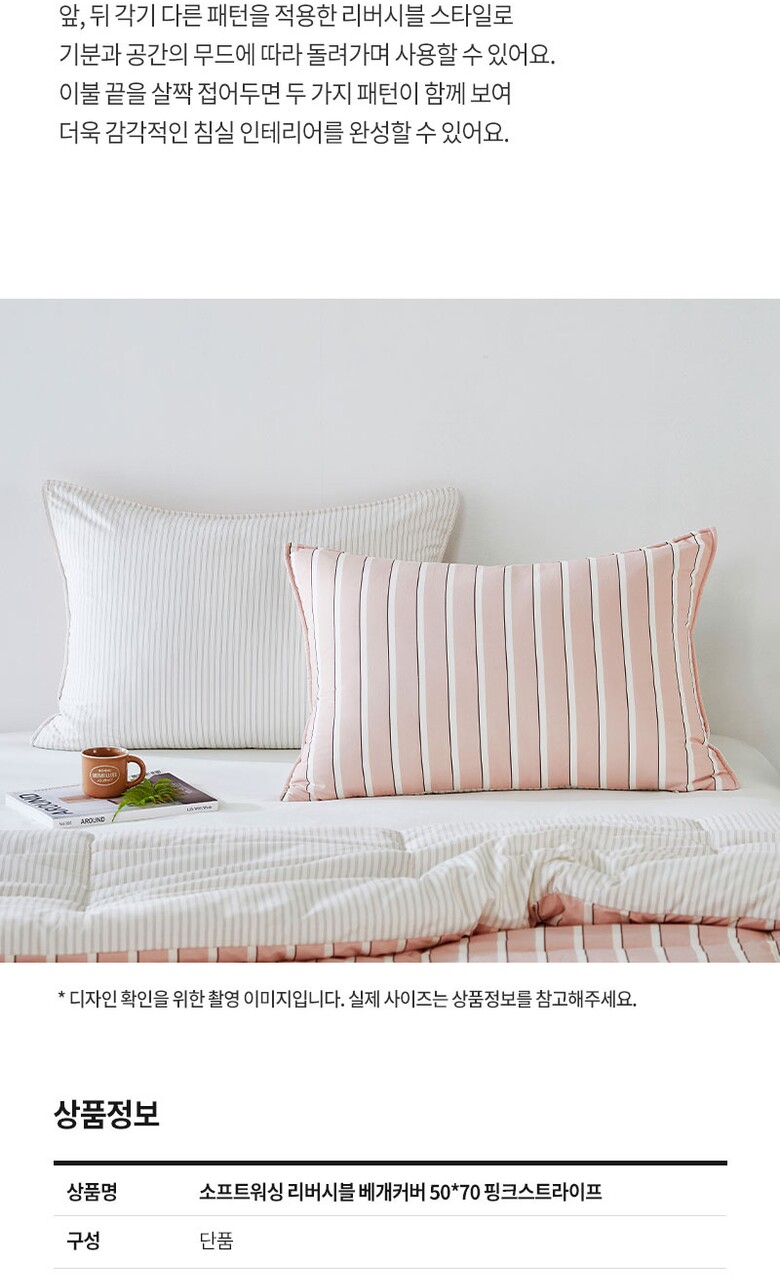 모던하우스 소프트워싱 리버시블 베개커버 50x70 핑크스트라이프 CV0325155