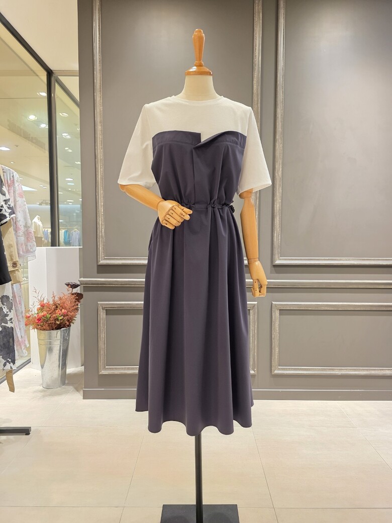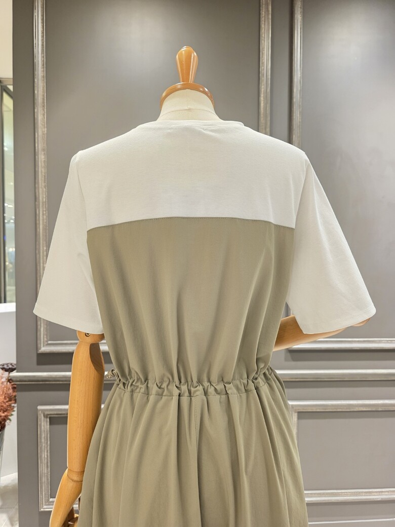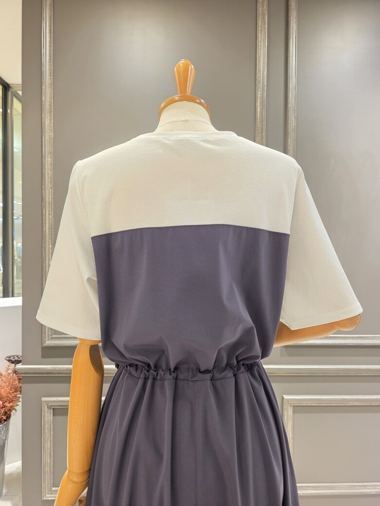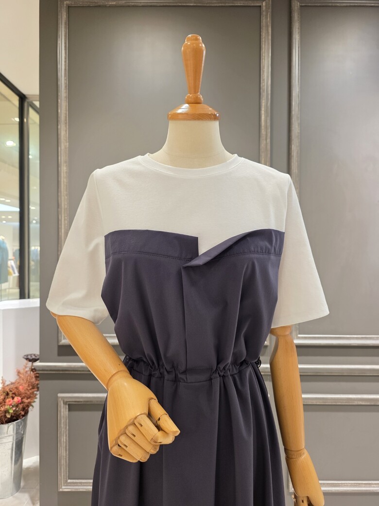 2025넌 S/S 신상품 아노락 스타일의 면 배색 원피스입니다