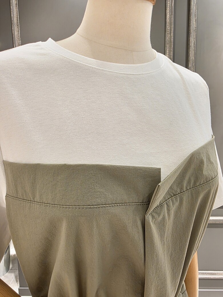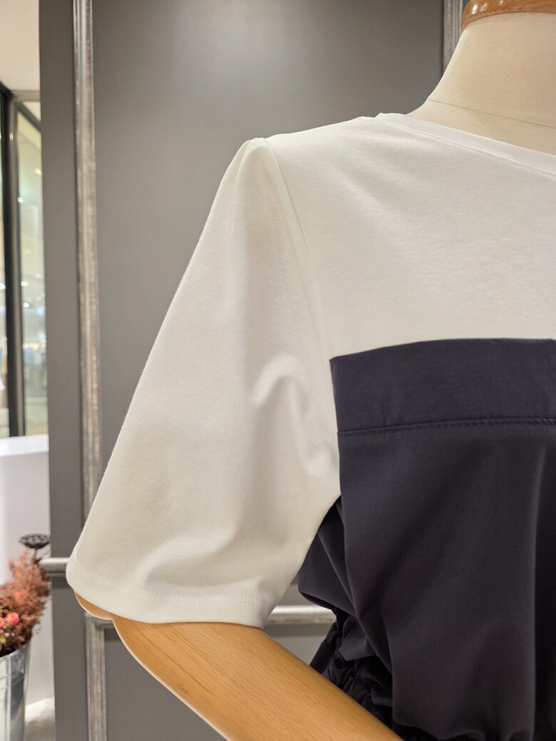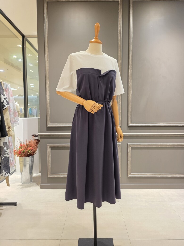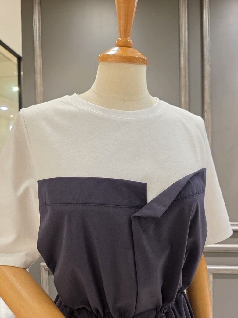 2025넌 S/S 신상품 아노락 스타일의 면 배색 원피스입니다