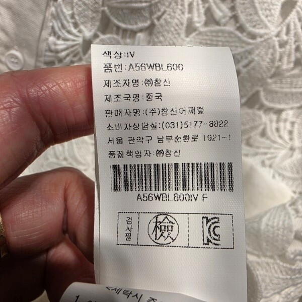 제조자 : (주)참신어패럴