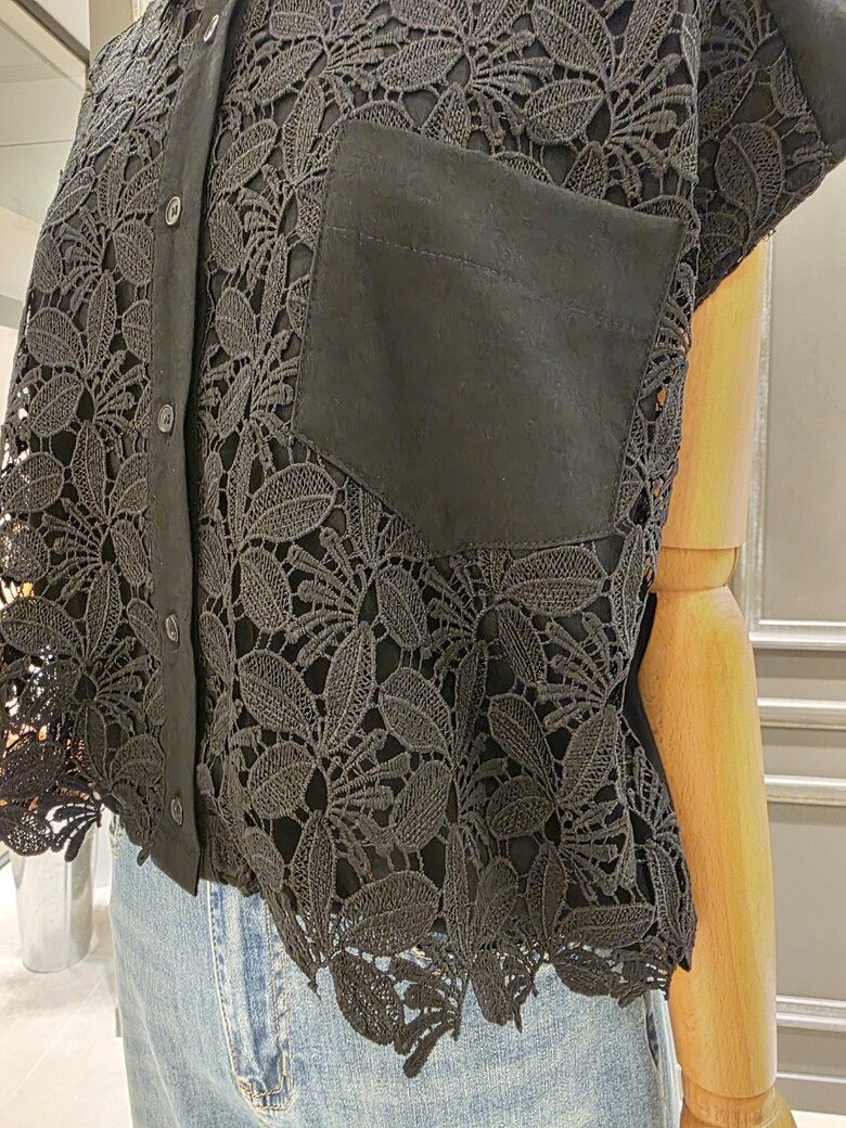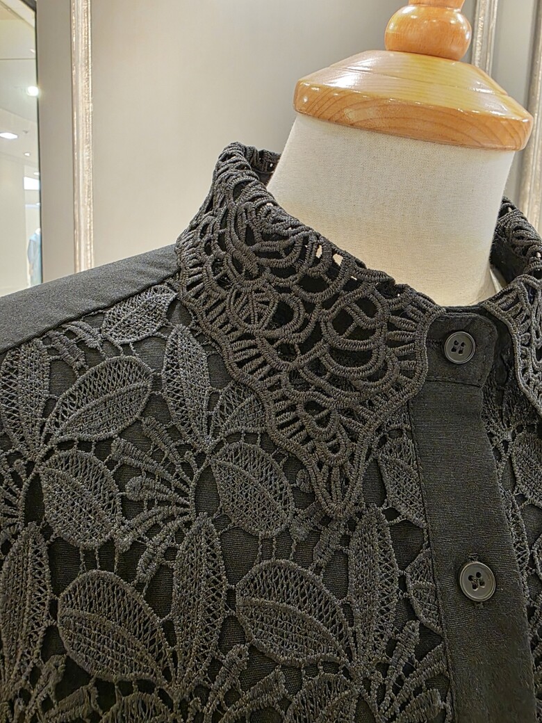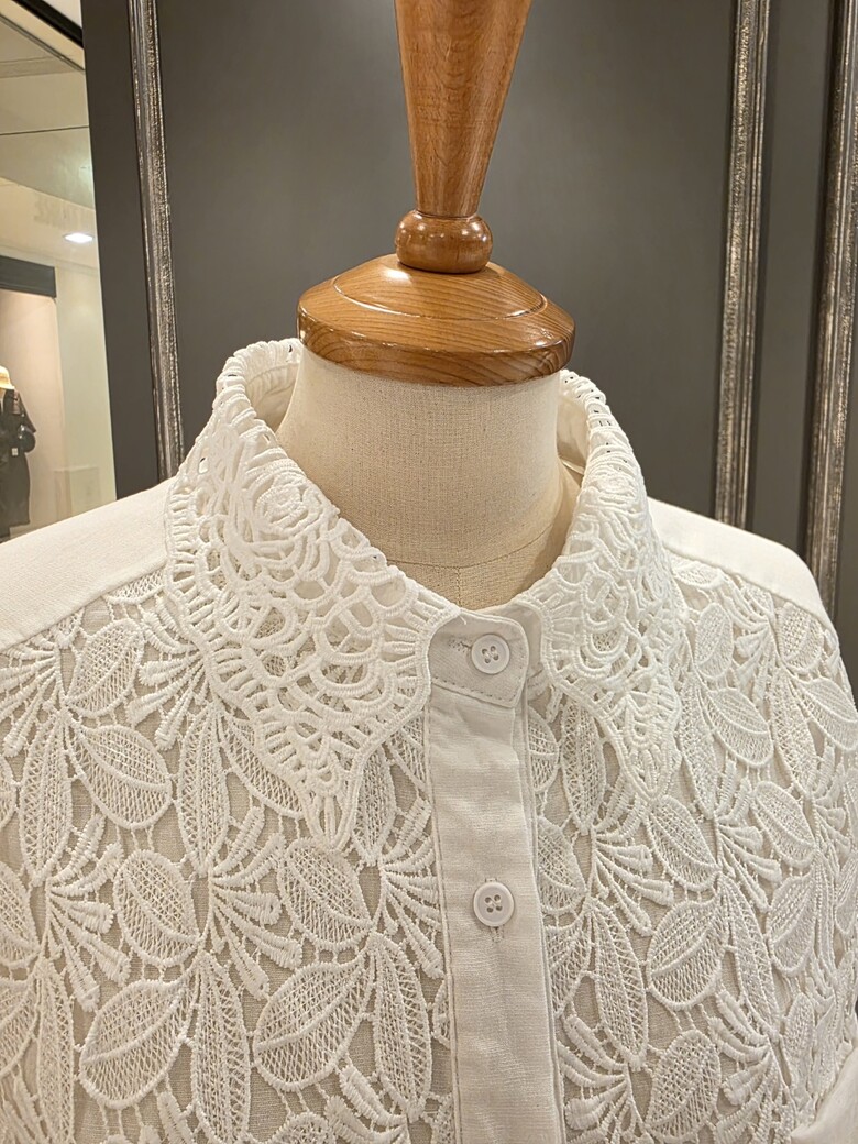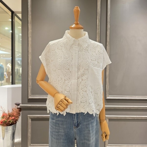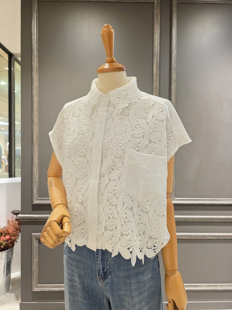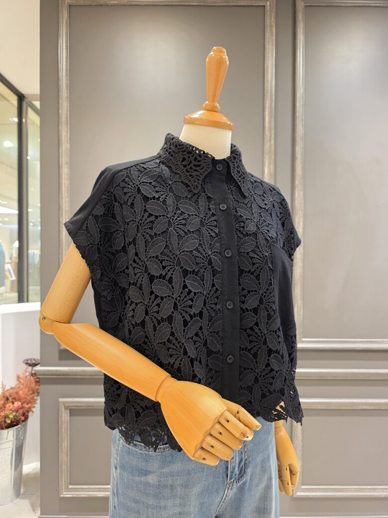 플라워 패턴의 레이스 카라넥 블라우스입니다
