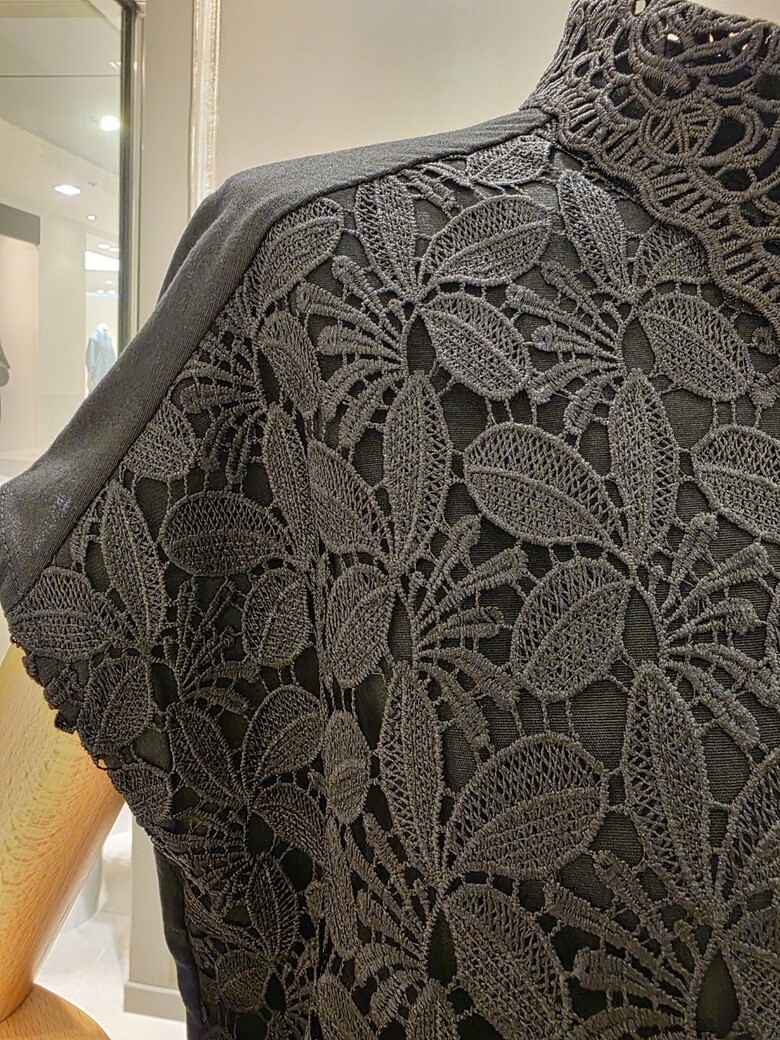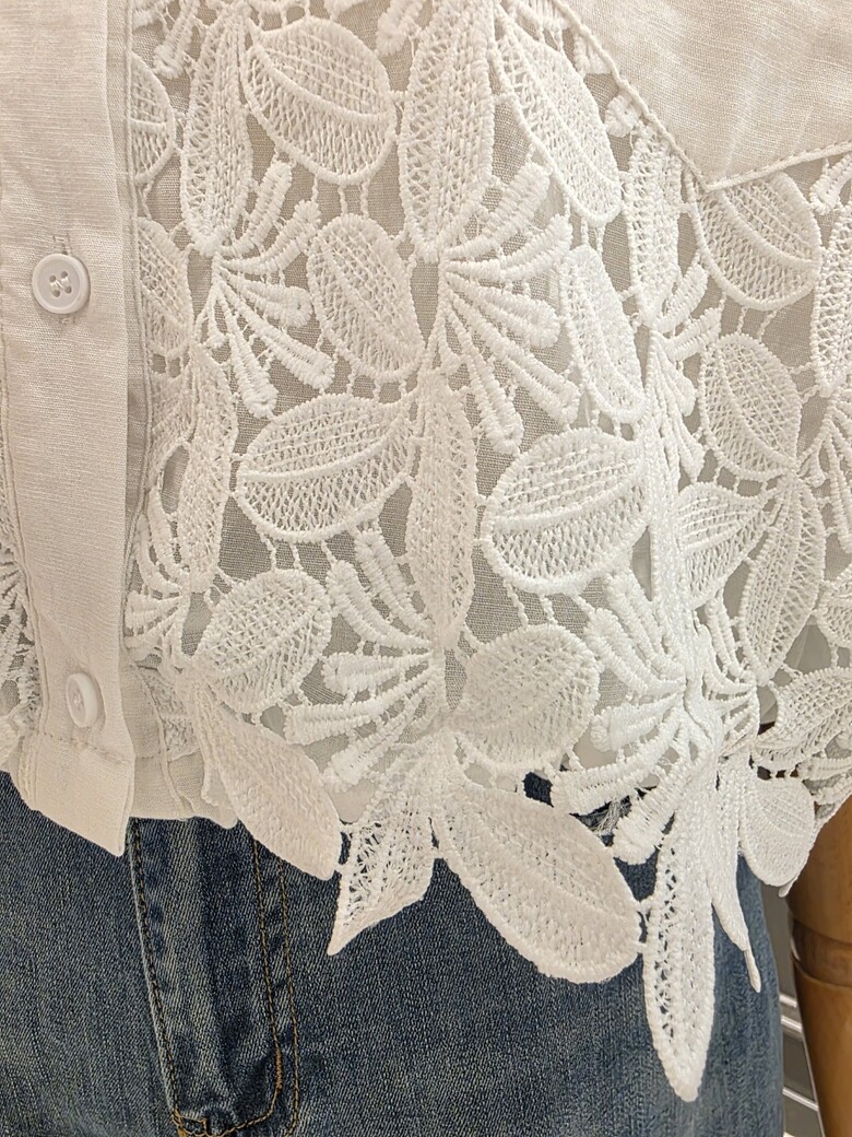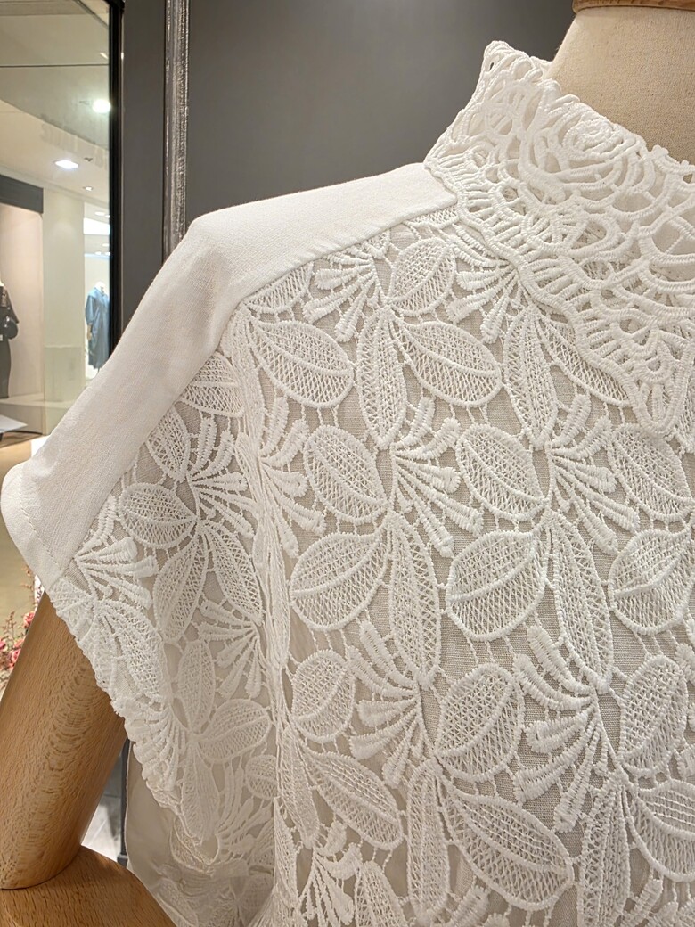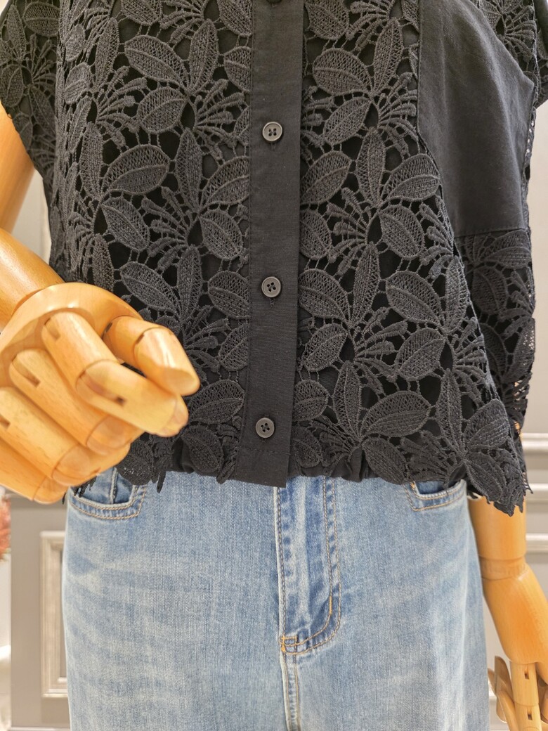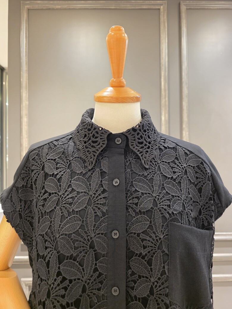 플라워 패턴의 레이스 카라넥 블라우스입니다