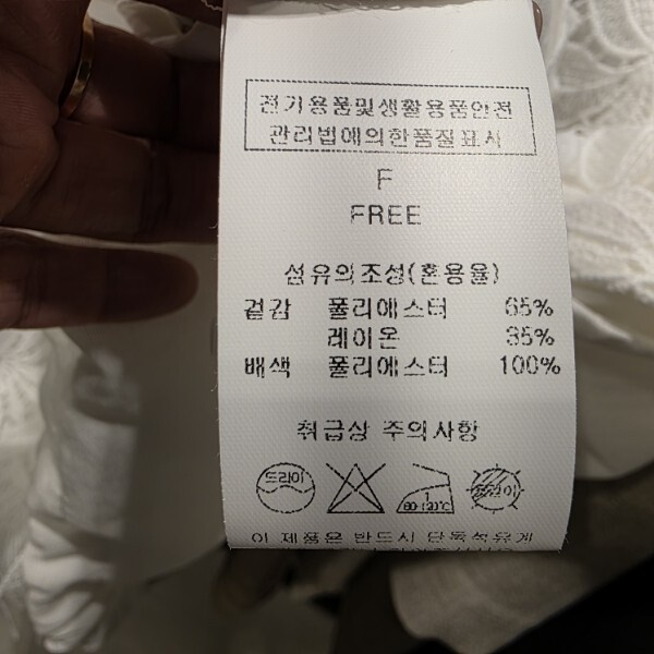 제품소재 : 겉감 폴리에스터 65% 레이온 35% / 배색 폴리에스터 100%