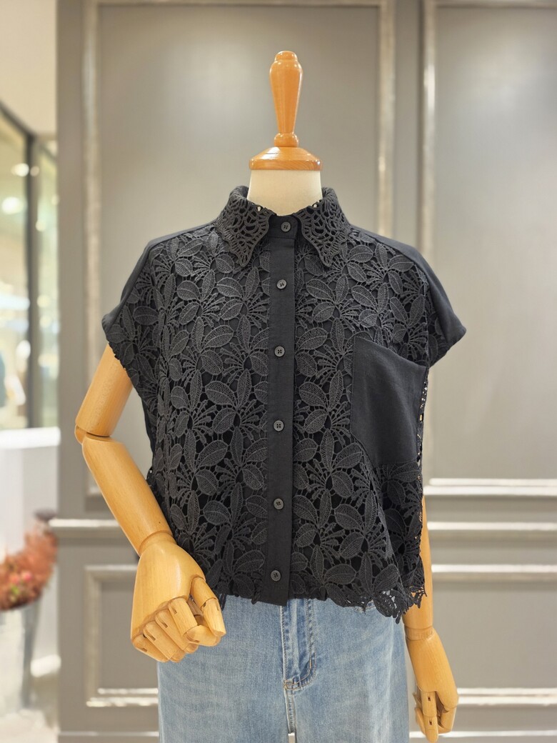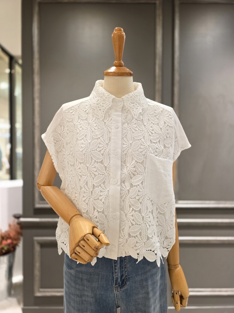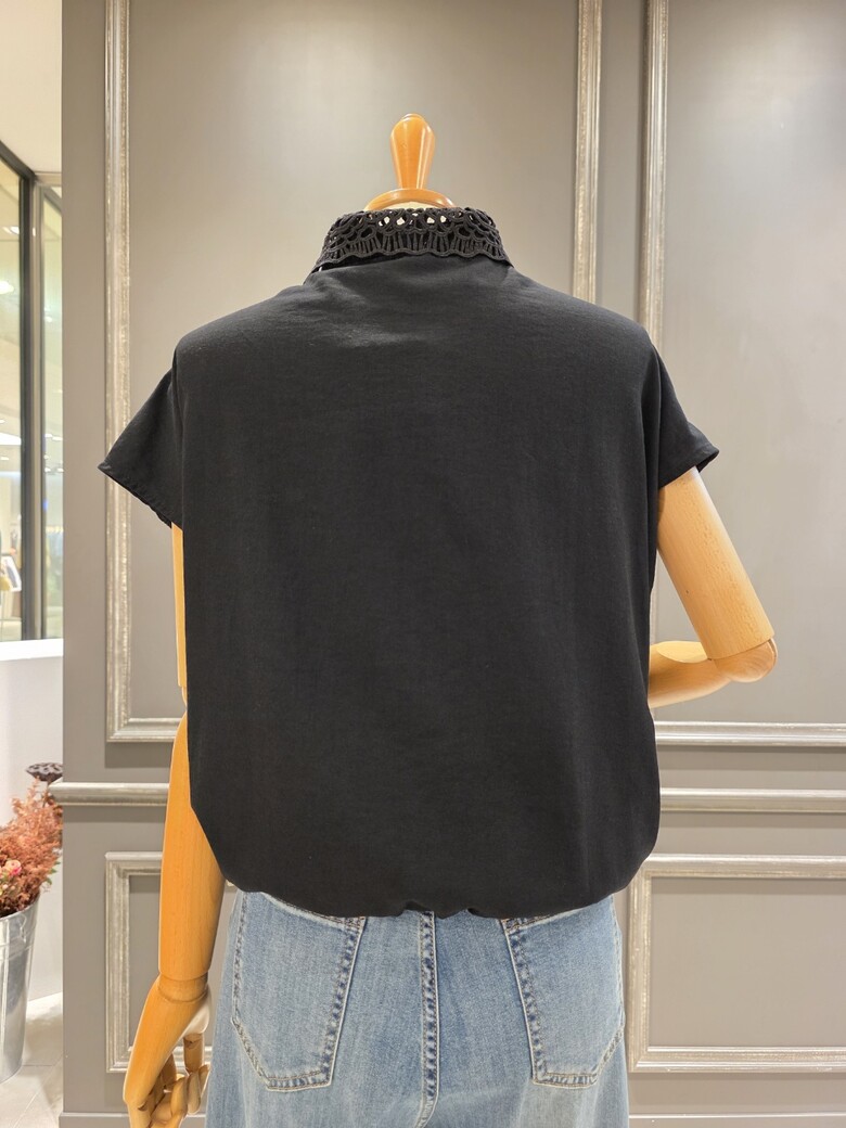 A56WBL600_레이스 카라 배색 블라우스
