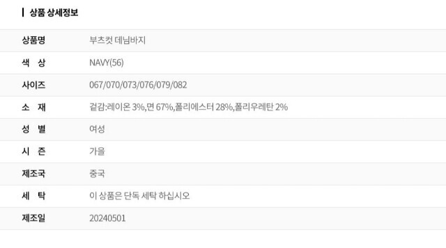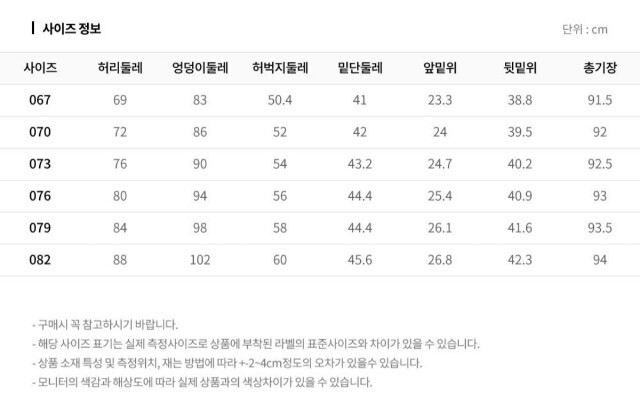 | 6. 세탁방법 및 취급시 주의사항 | 상품상세참조 |
