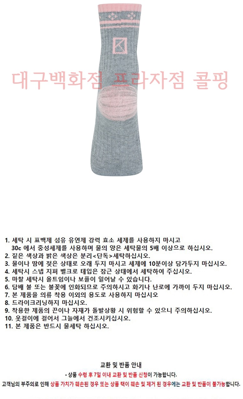취급 시 주의사항 : 단독세탁,세탁기 및 표백성세제 사용금지