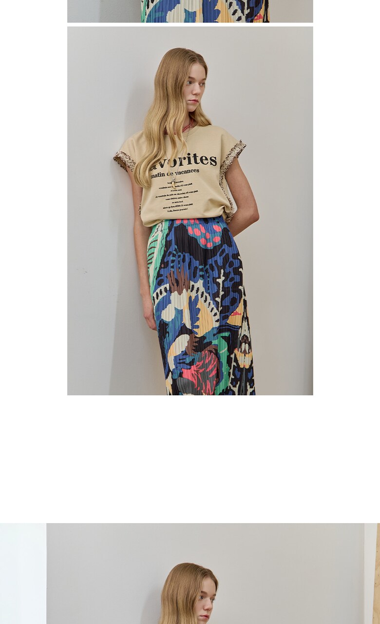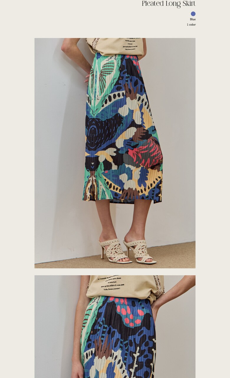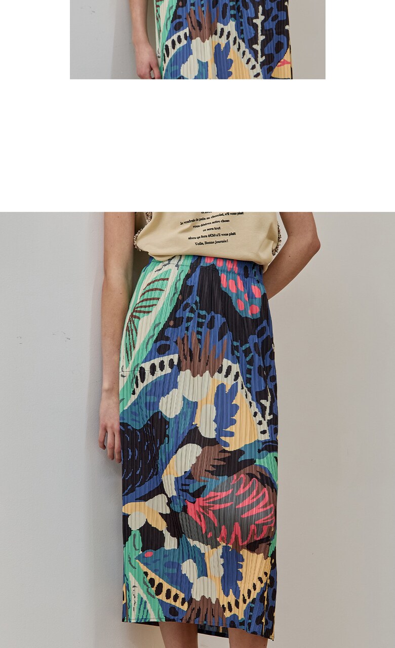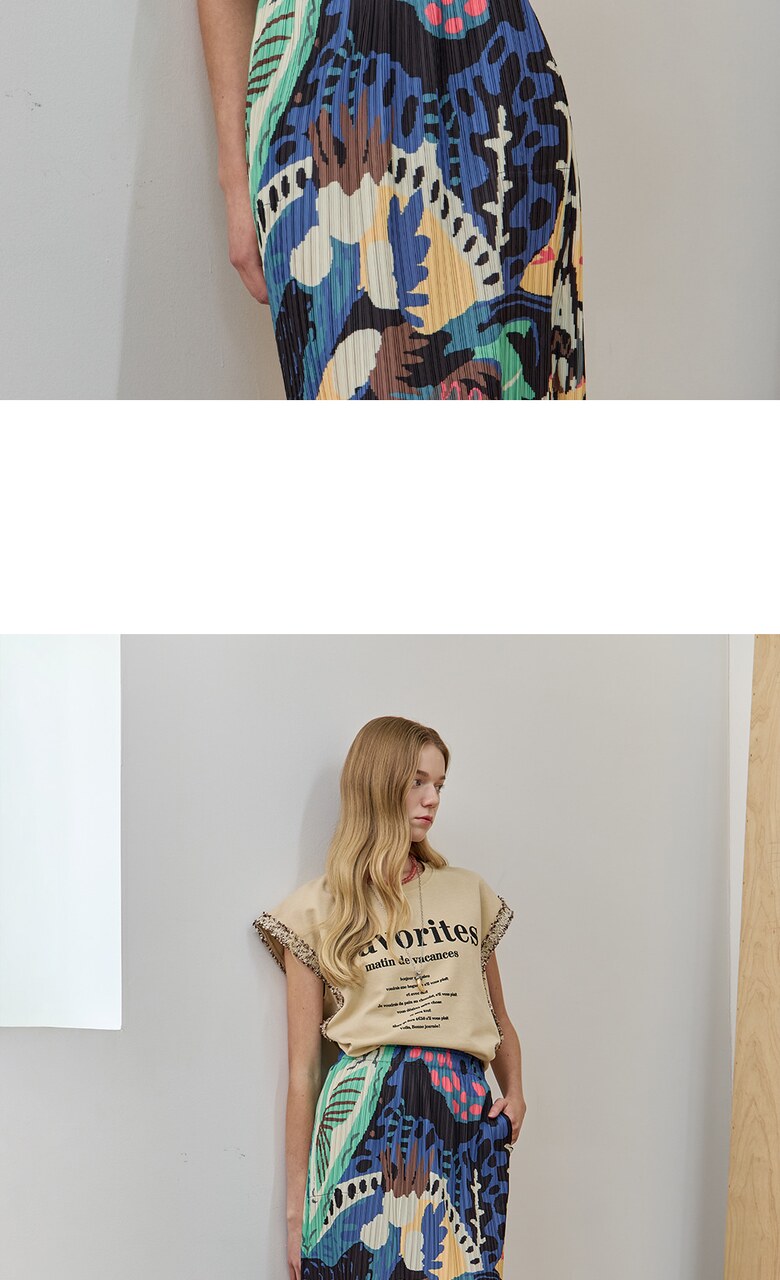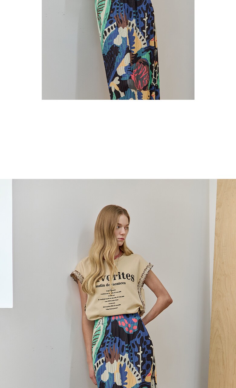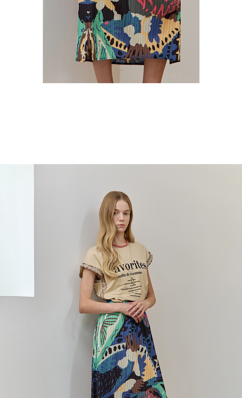 트로피컬 그래픽 패턴 밴딩 플리츠 롱 스커트