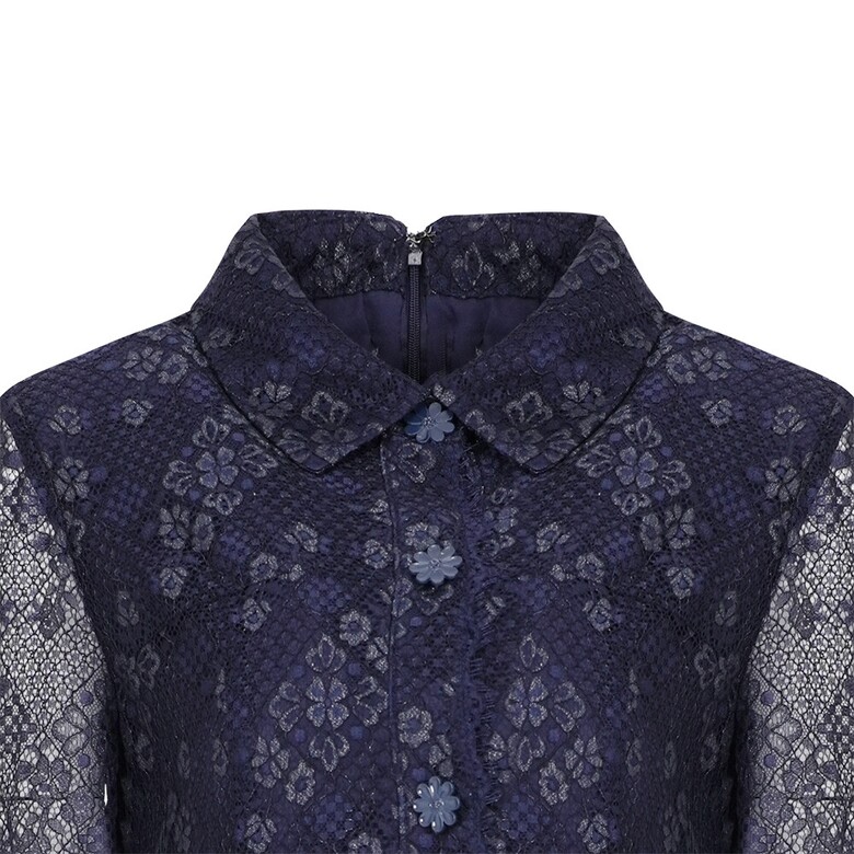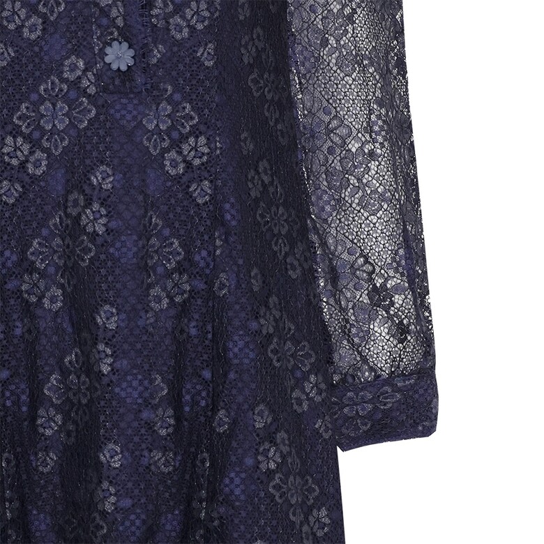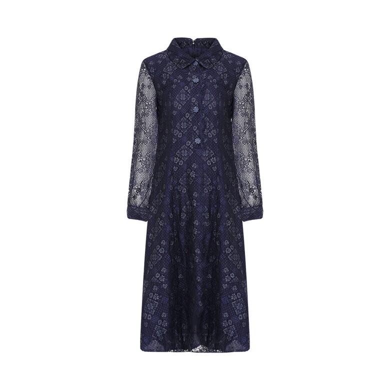 전체 레이스 원단으로 핏앤플레어 실루엣으로 여성스러움을 더한 아이템