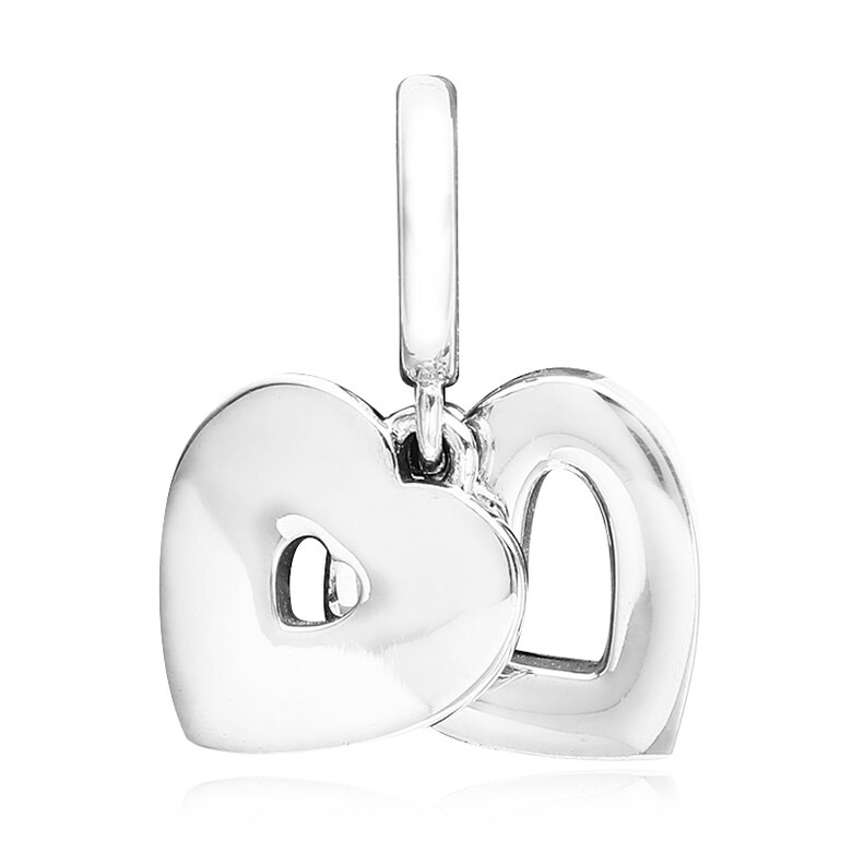 판도라 792649C01 진주 화이트 하트 더블 펜던트 겸 댕글 실버 참