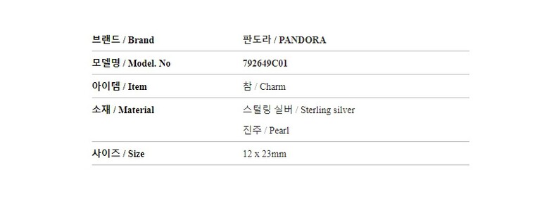 | 1. 소재 / 순도 / 밴드재질 | 실버 / 쥬얼리 - 스털링실버 / 팬던트 - 진주 |