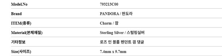 판도라 793213C00 로즈 인 블룸 펜던트 겸 댕글 실버 참