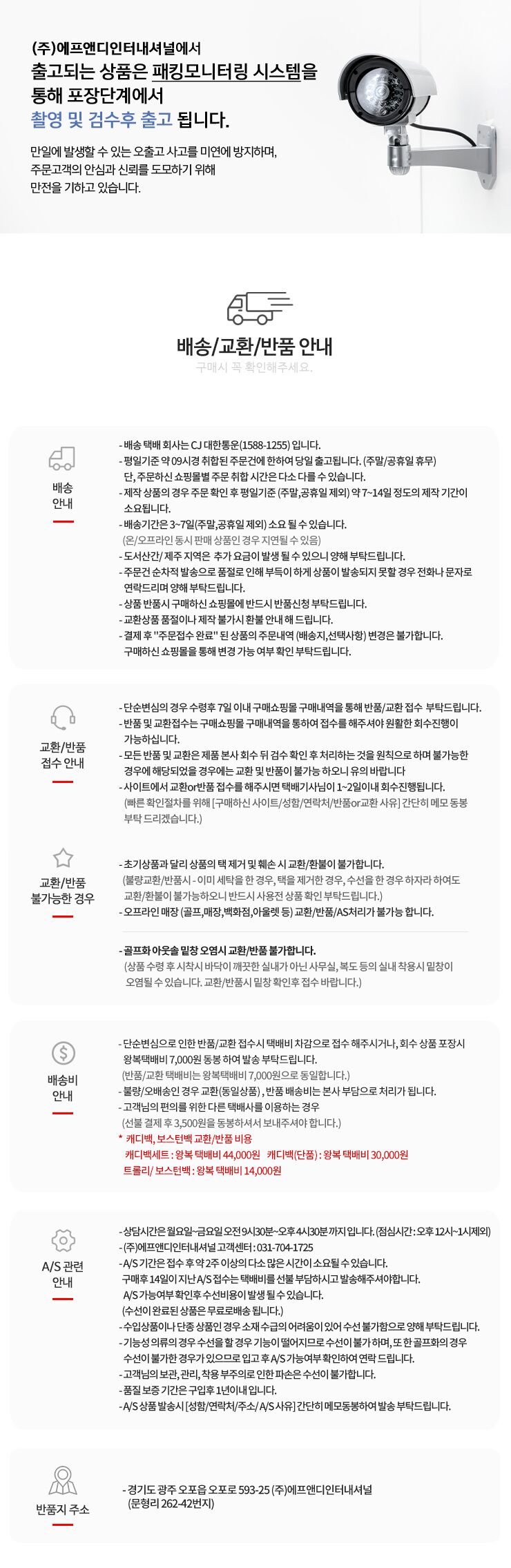 상품불량에 의한 반품, A/S, 품질보증 및 피해보상 등에 관한 사항은 소비자 분쟁해결기준(공정거래위원회 고시) 구매자가 미성년자인 경우에는 상품 구입시 법정대리인이 동의하지 아니하면 미성년자 본인 또는 법정대리인이 구매취소 할 수 있습니다. |