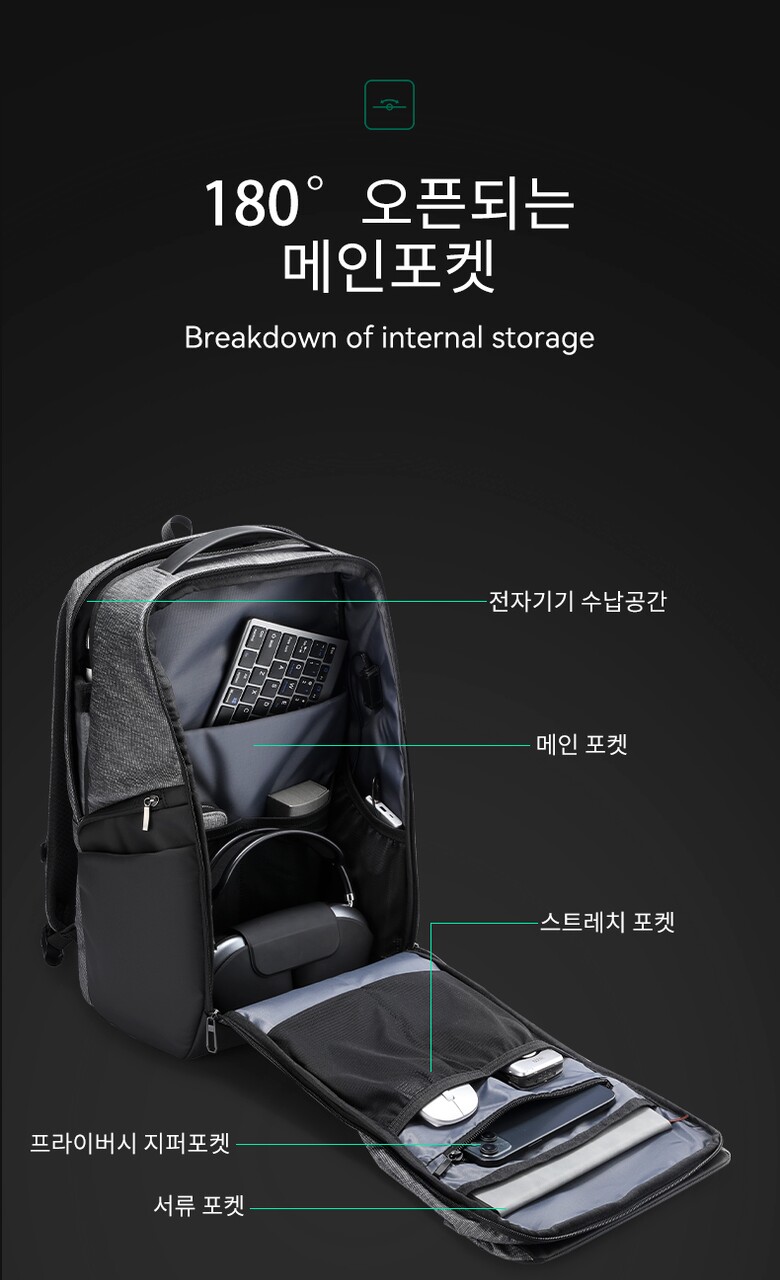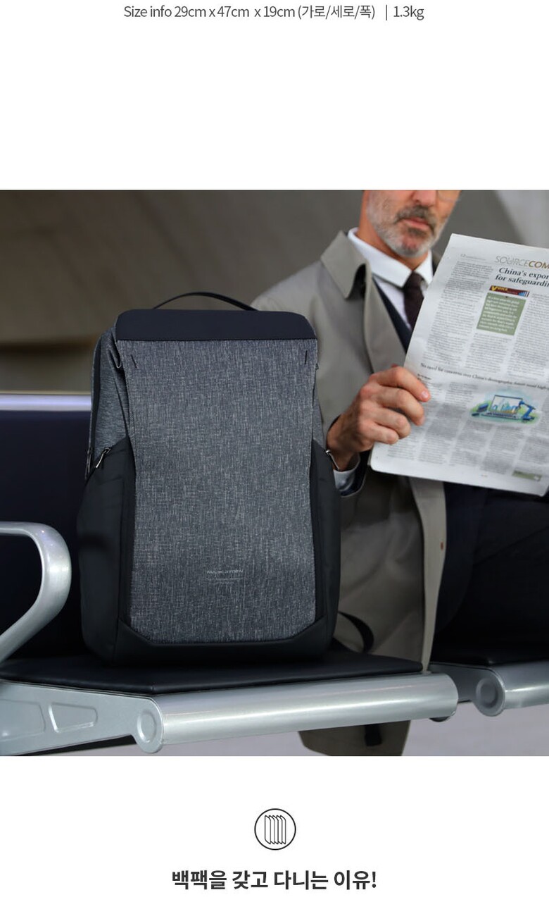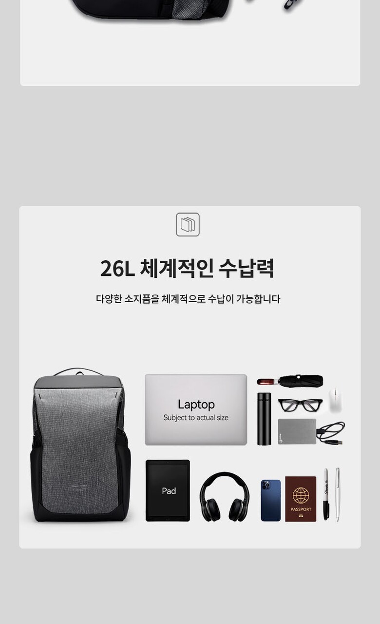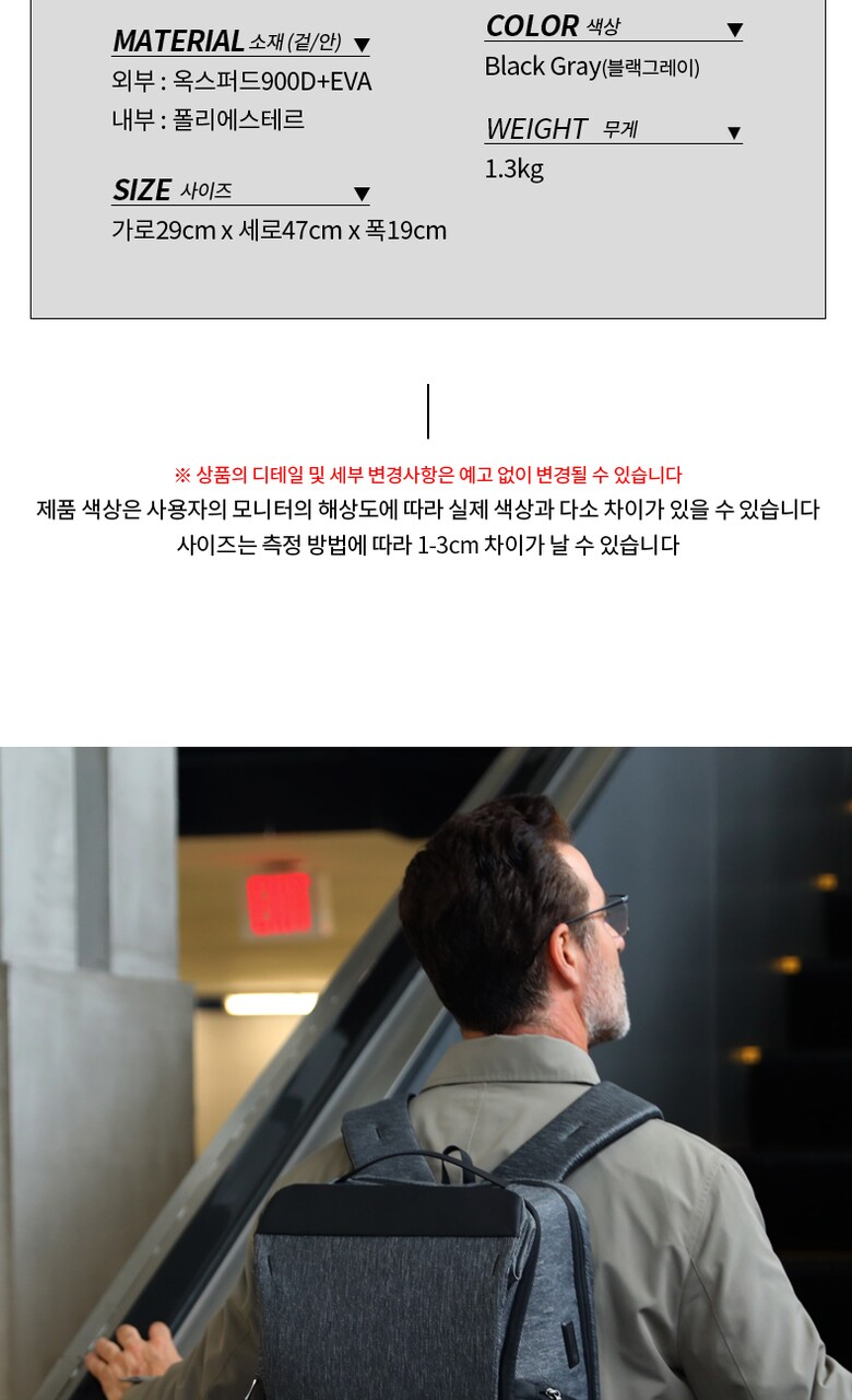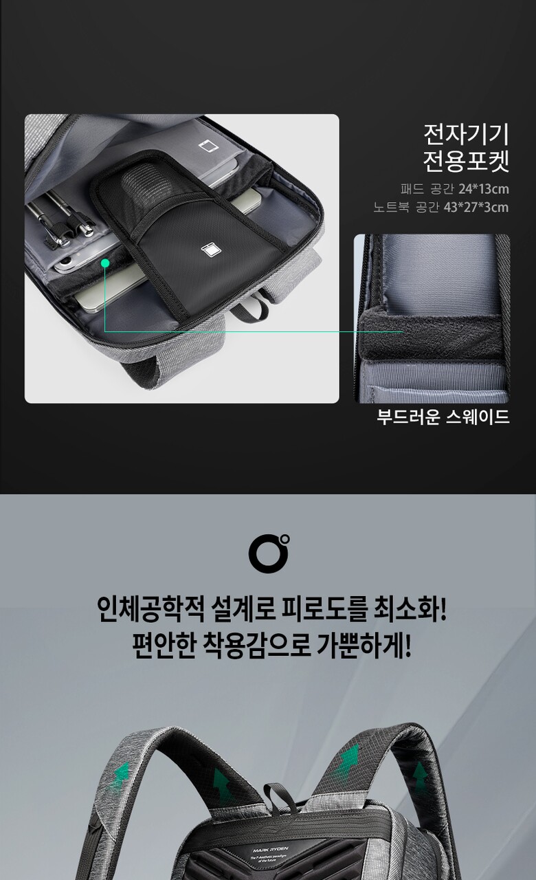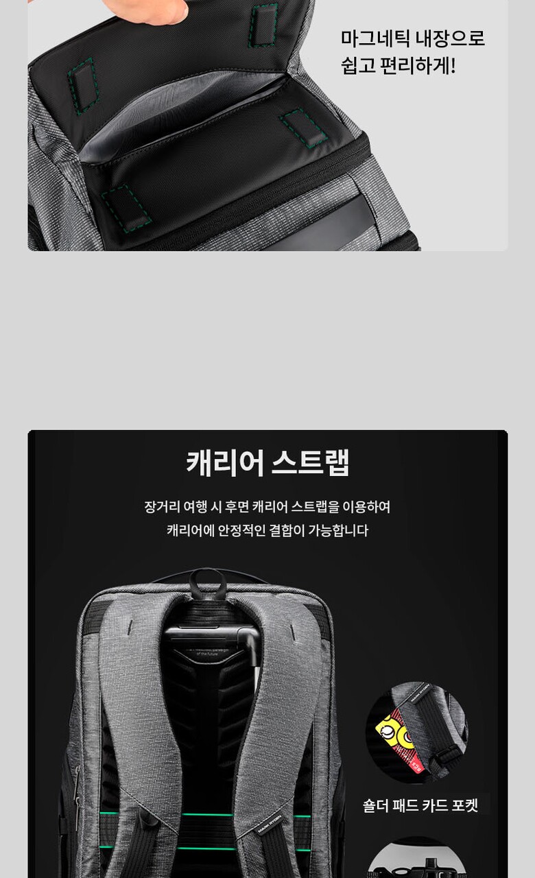 듀얼마그네틱 에어서스펜션 블랙그레이 백팩 대학생 직장인 가방