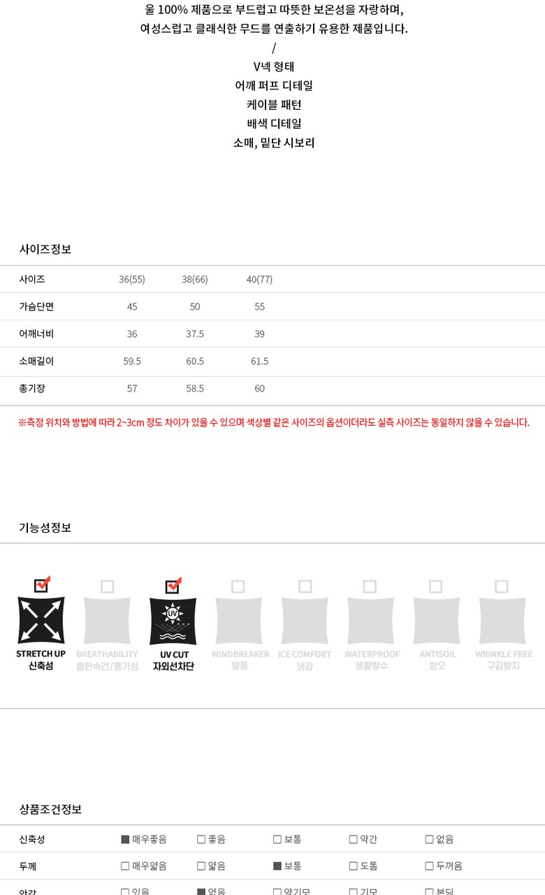 가먼트골프 여성 울 퍼프 슬리브 케이블 가디건 GFKCC360