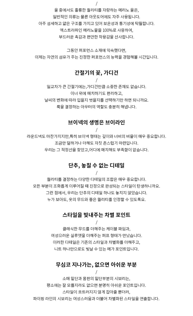 1. 제품 소재 (섬유의 조성 또는 혼용률을 백분율로 표시, 기능성인 경우 성적서 또는 허가서) | 겉감:울100% 배색:울100% |