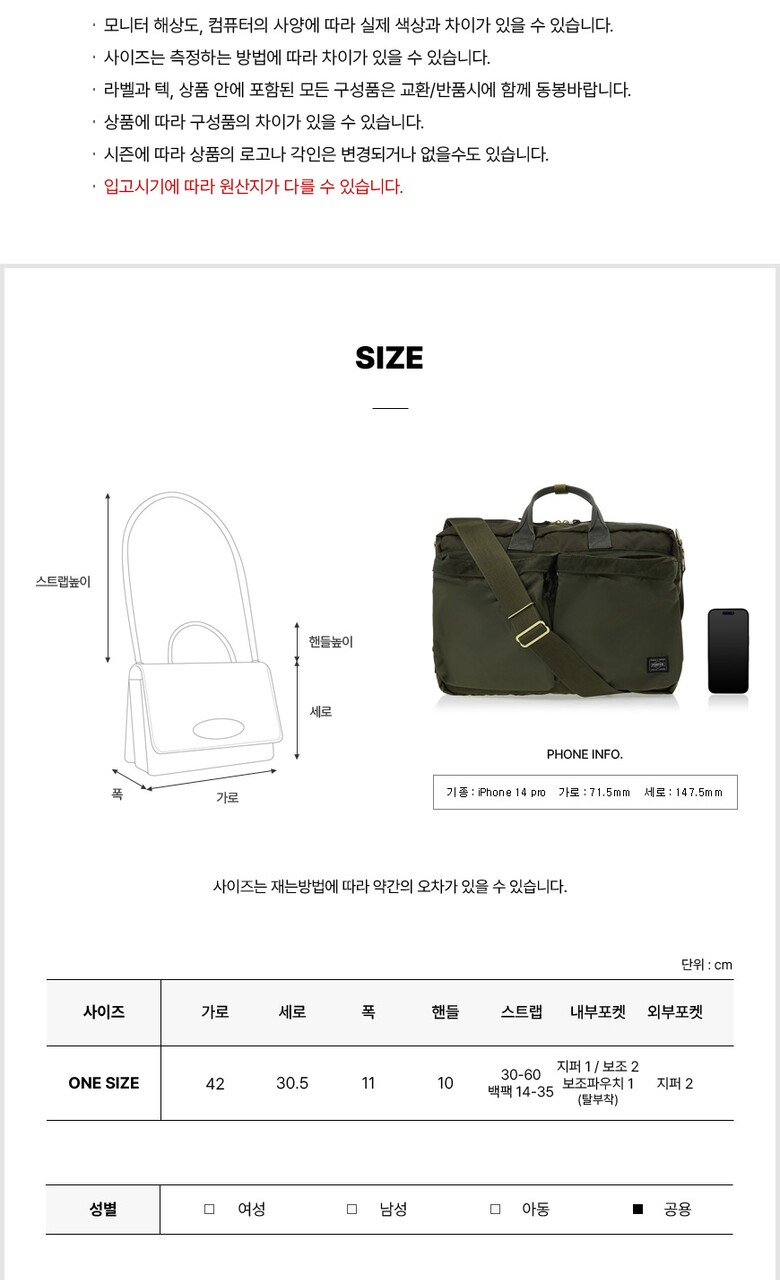 4. 크기 | 가로 42cm X 세로 30.5cm X 폭 11cm |