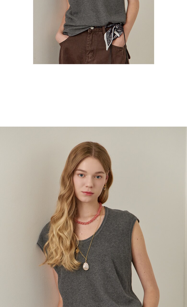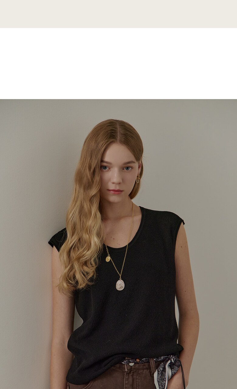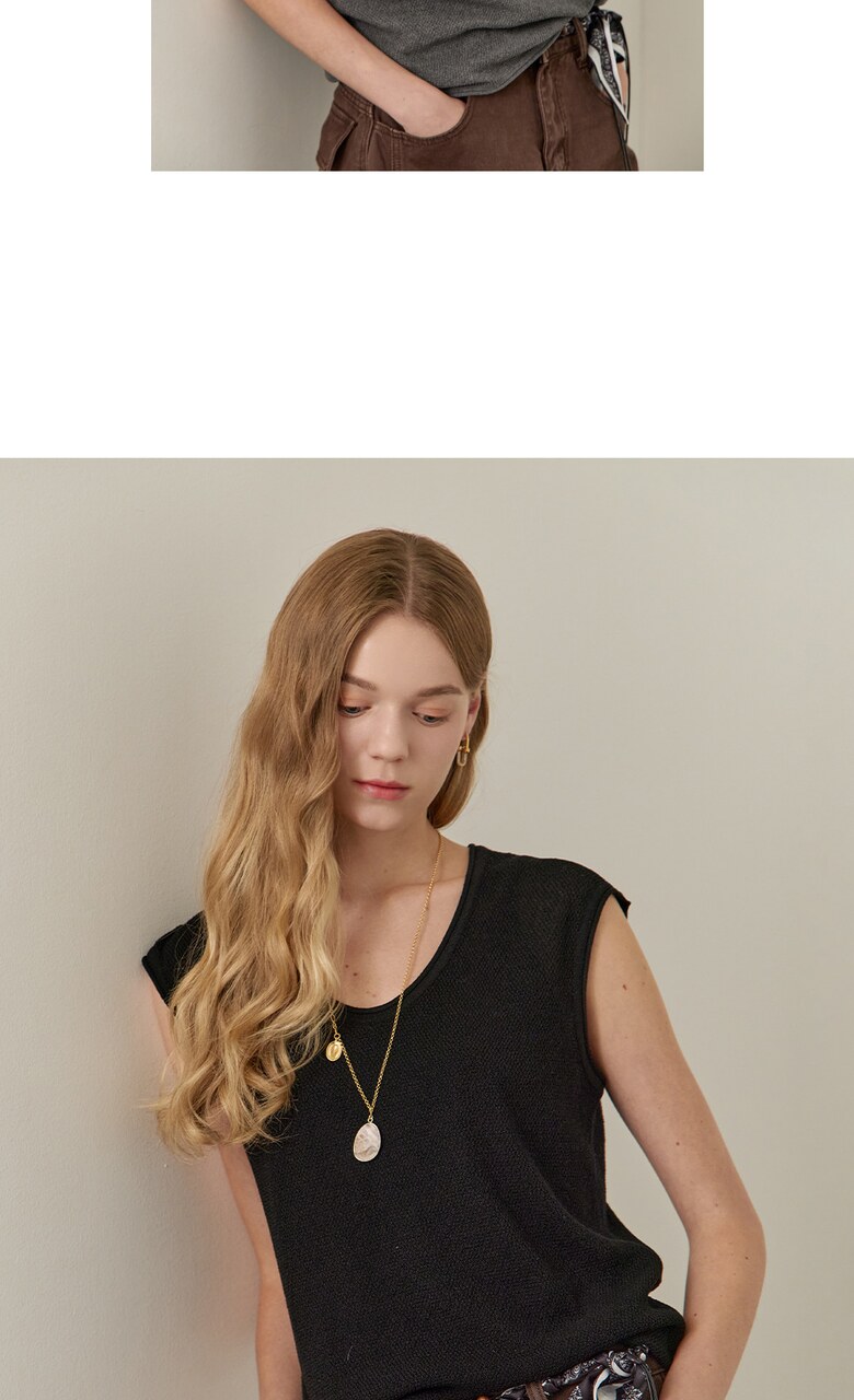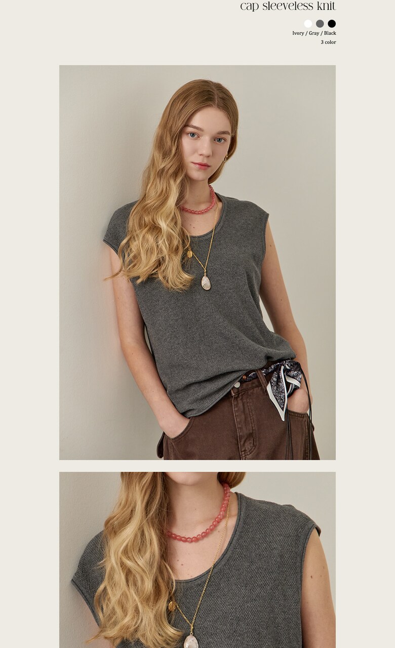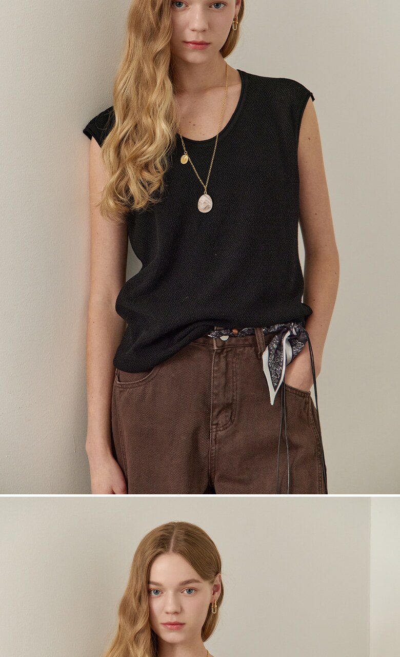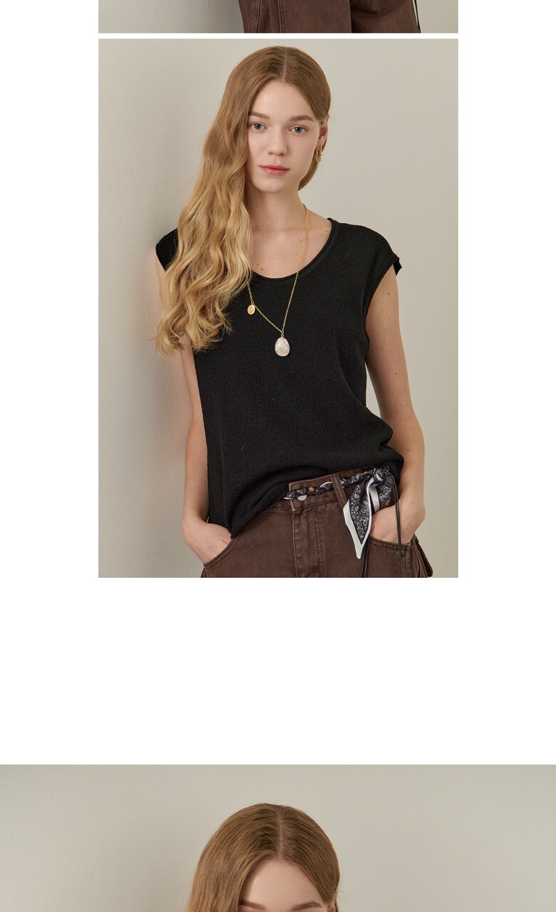 롤링 라운드넥 캡소매 슬리브리스 니트