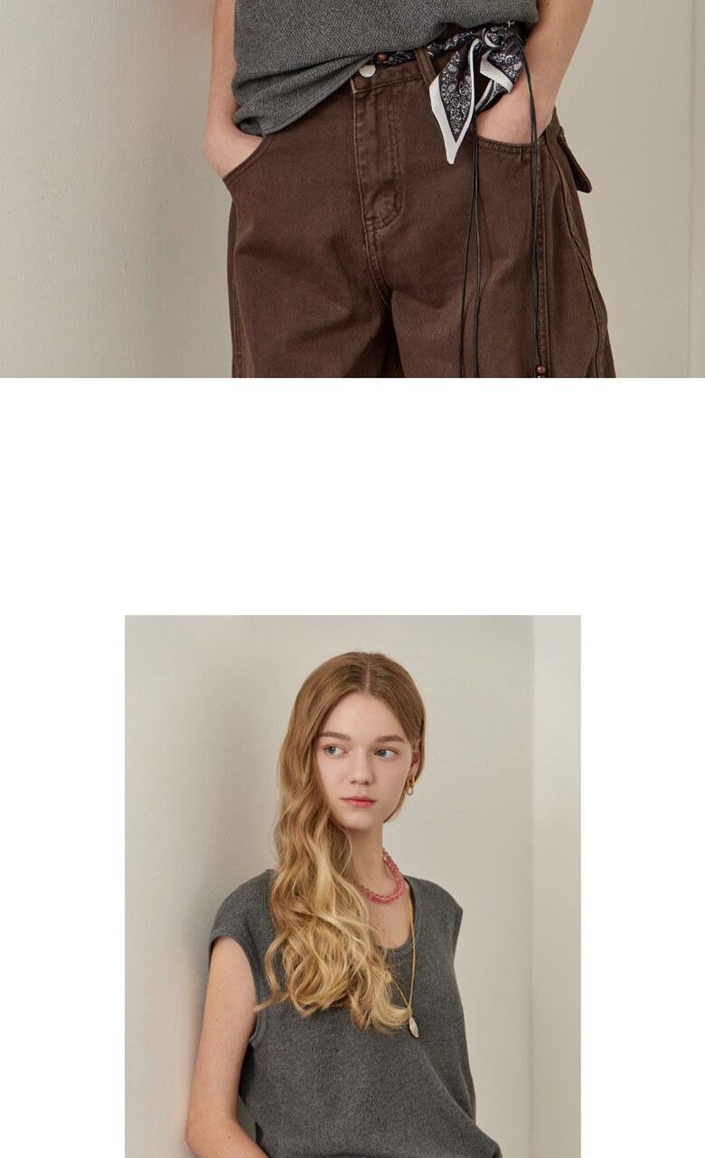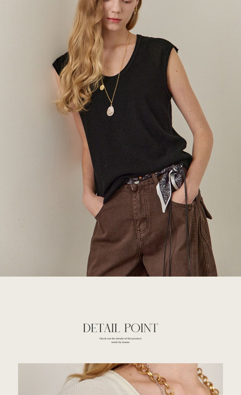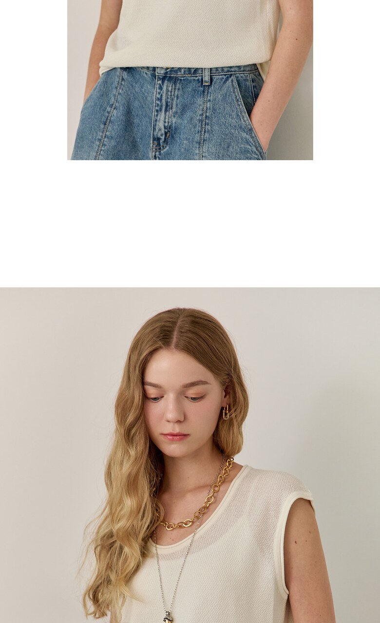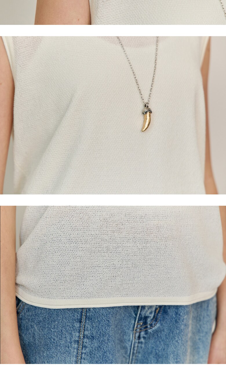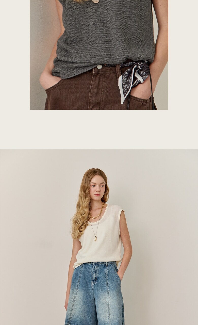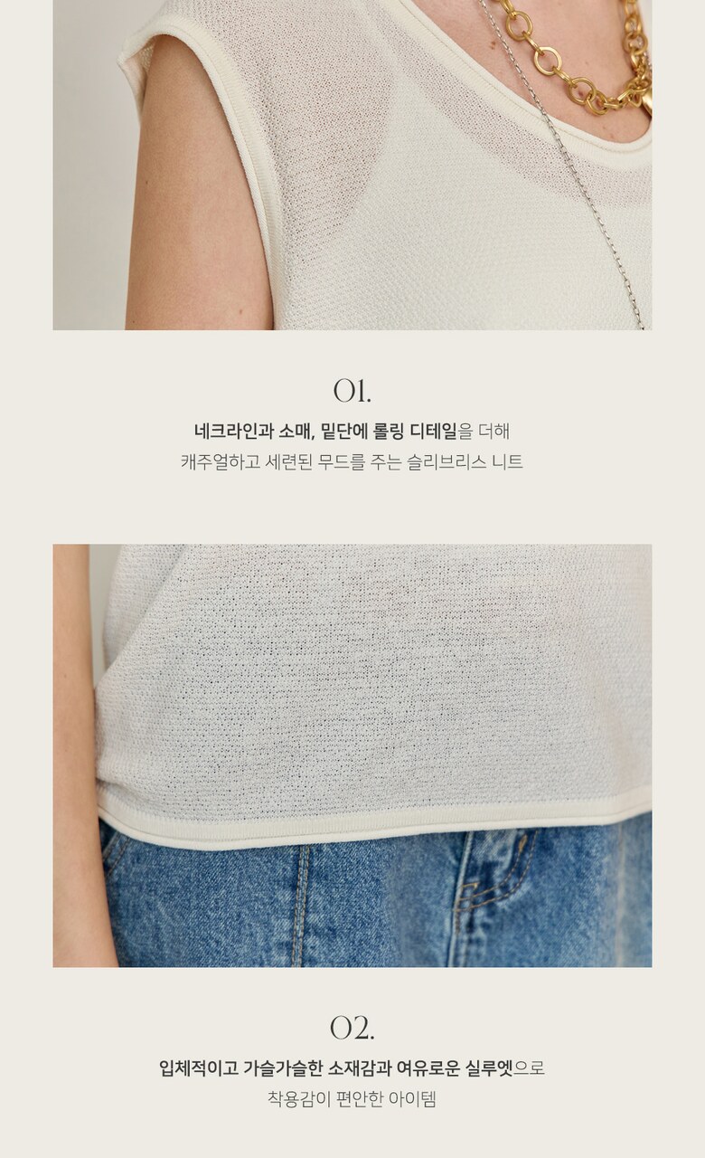롤링 라운드넥 캡소매 슬리브리스 니트