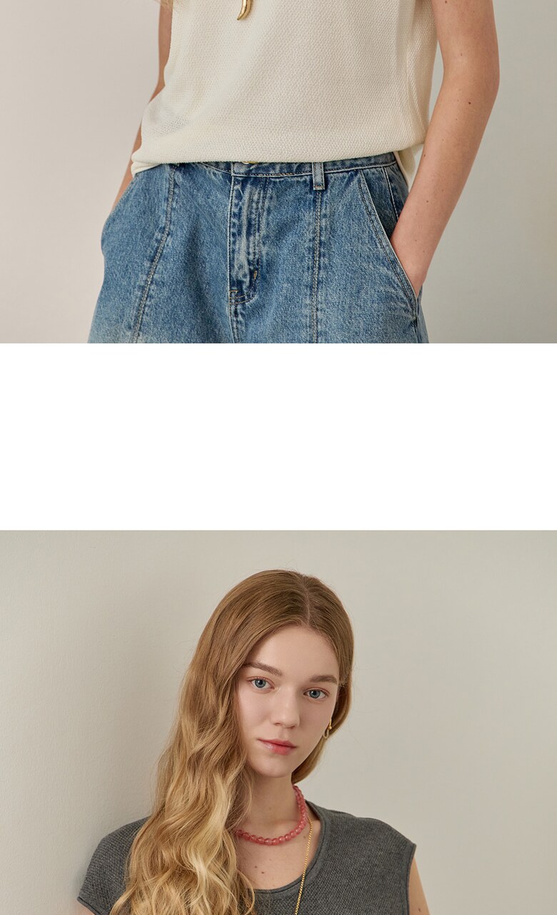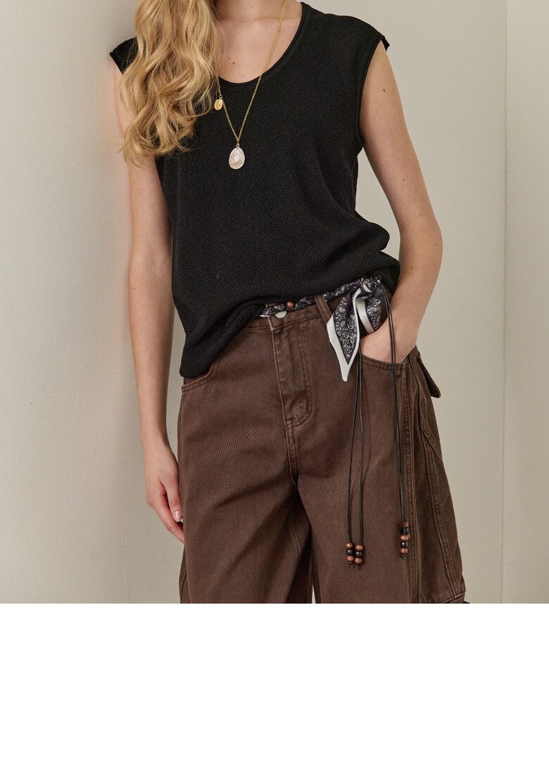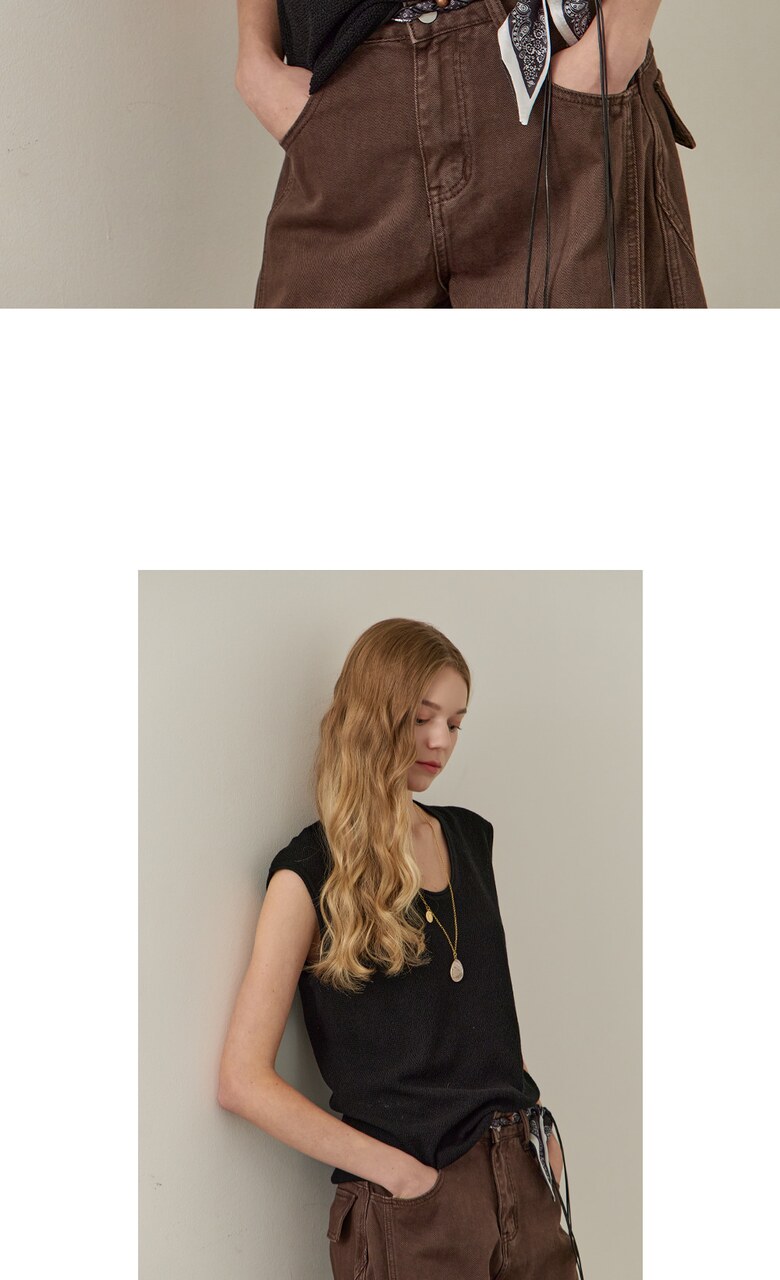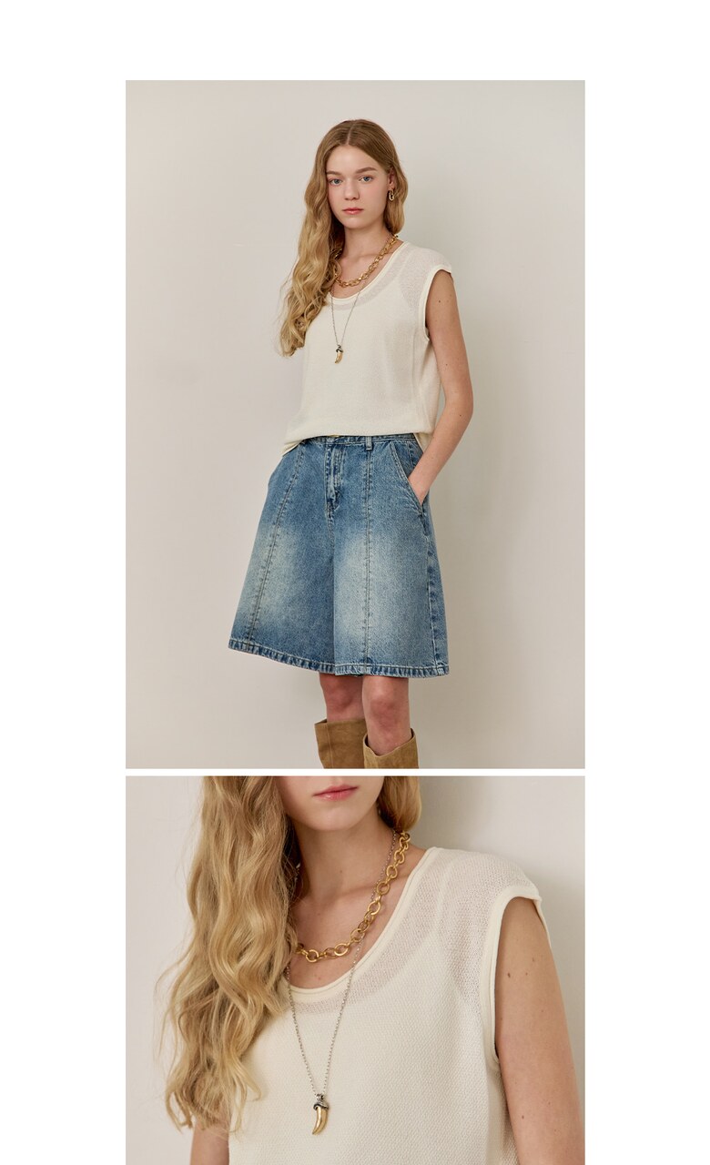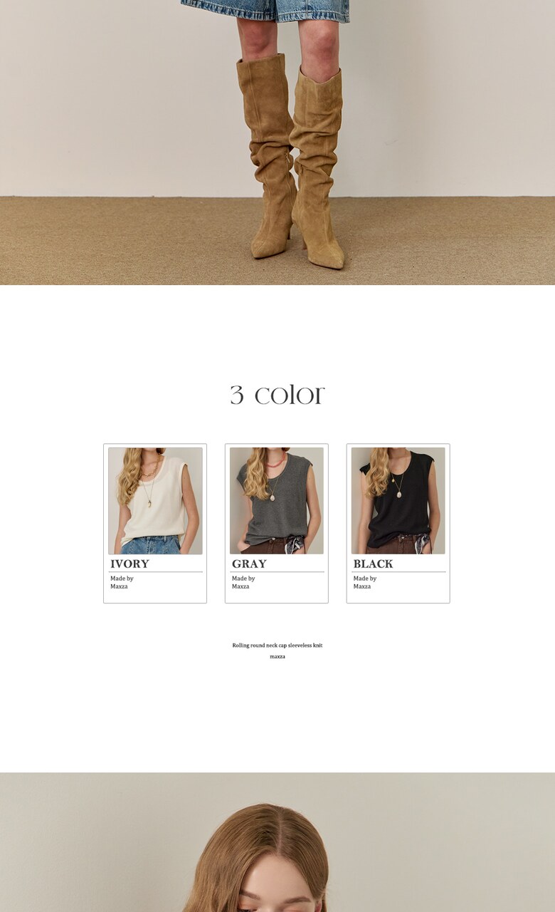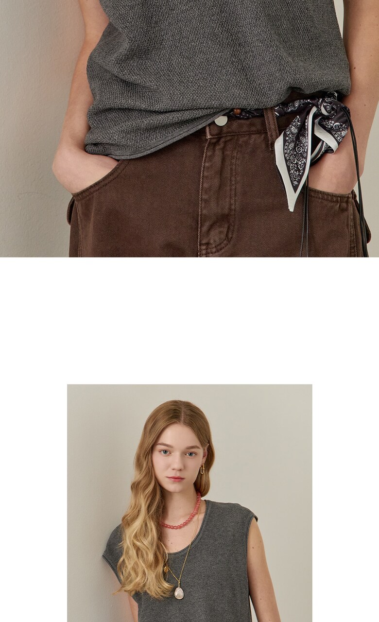 롤링 라운드넥 캡소매 슬리브리스 니트