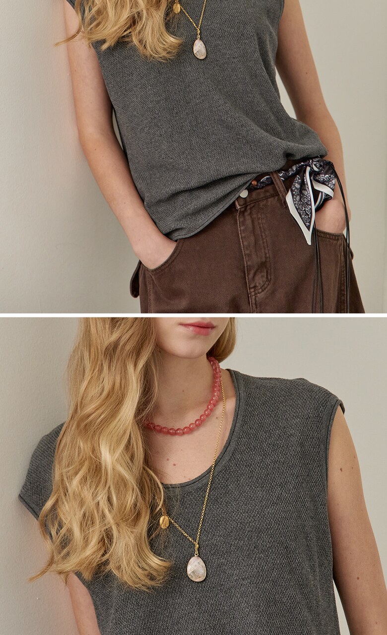 네크라인과 소매, 밑단에 롤링 디테일을 더해