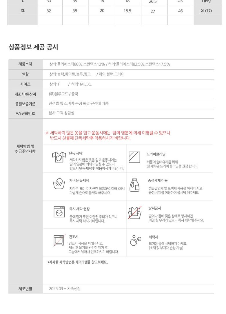 6. 세탁방법 및 취급시 주의사항 | 상세설명참고 |