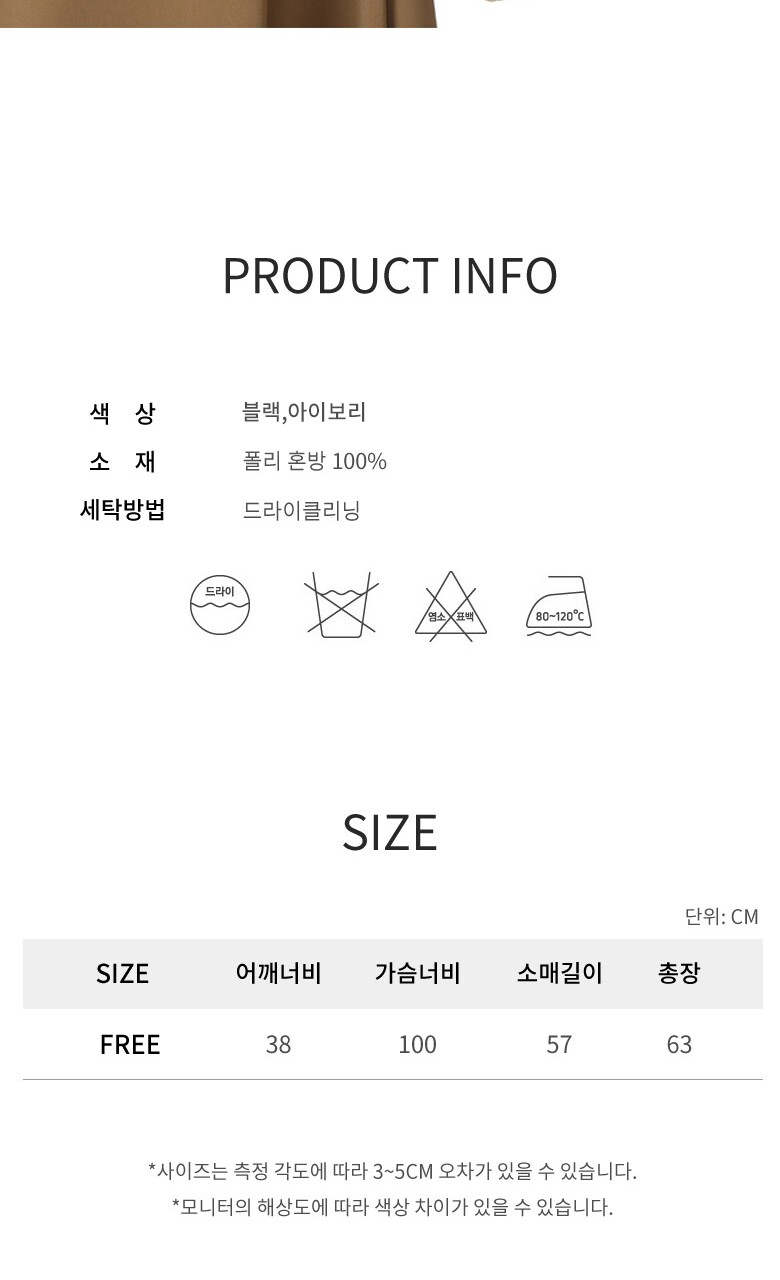 1. 제품 소재 (섬유의 조성 또는 혼용률을 백분율로 표시, 기능성인 경우 성적서 또는 허가서) | 상세페이지 참조 |