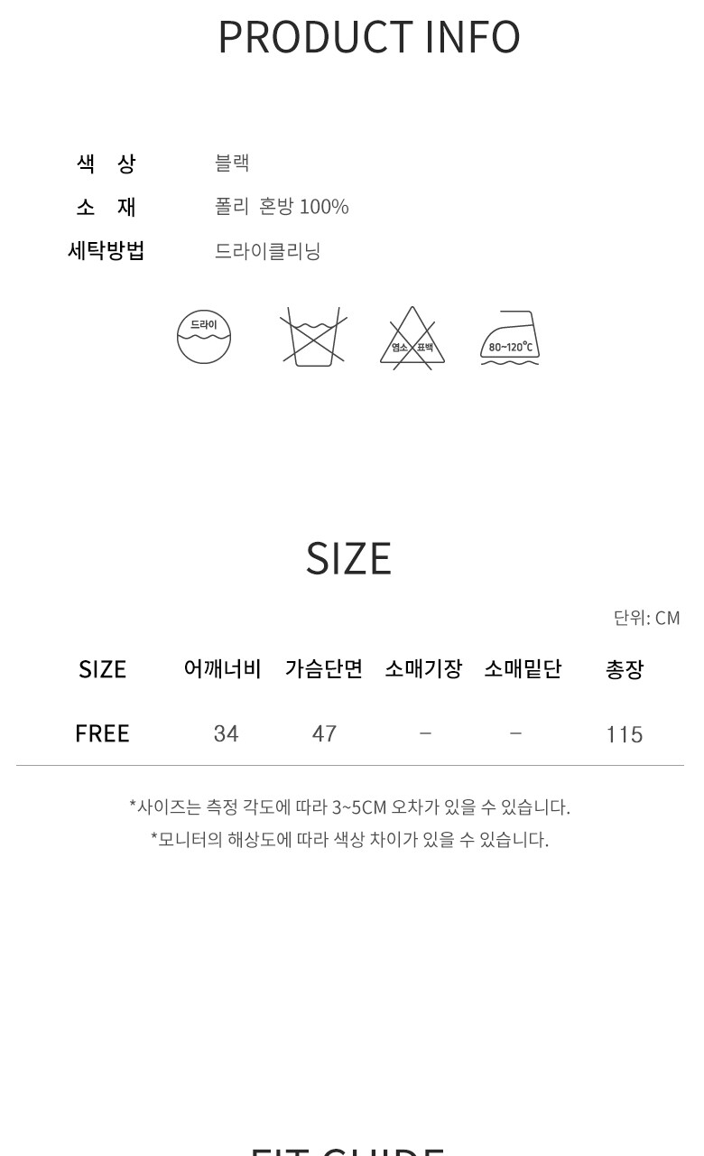 • 처음 배송된 상품상태와 다를 경우(세탁/착용 후 외출하신 경우) 반품이 불가합니다.