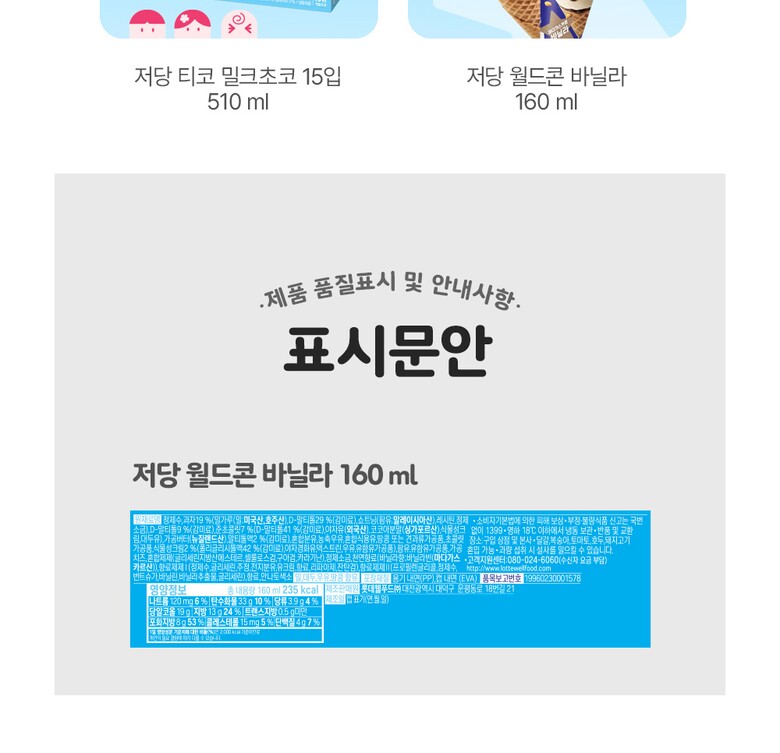 [롯데] 월드콘 5종 18개 (바닐라 6+쿠앤크 3+초코 3+말차 3+저당 3)