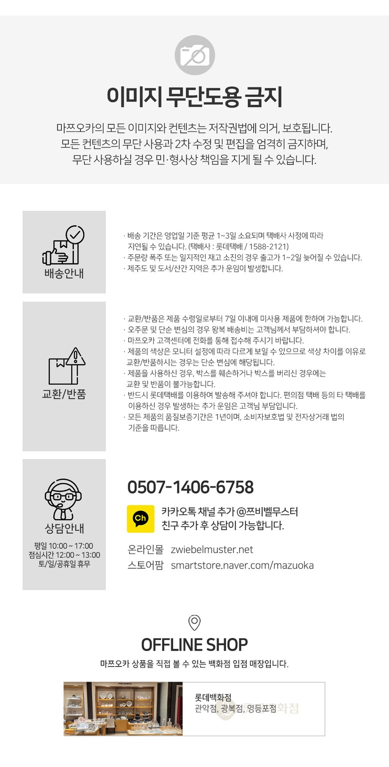 상품불량에 의한 반품, A/S, 품질보증 및 피해보상 등에 관한 사항은 소비자 분쟁해결기준(공정거래위원회 고시) 구매자가 미성년자인 경우에는 상품 구입시 법정대리인이 동의하지 아니하면 미성년자 본인 또는 법정대리인이 구매취소 할 수 있습니다. |