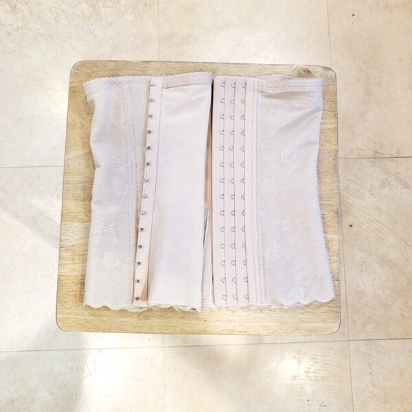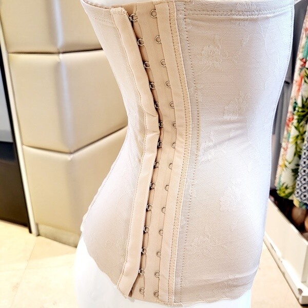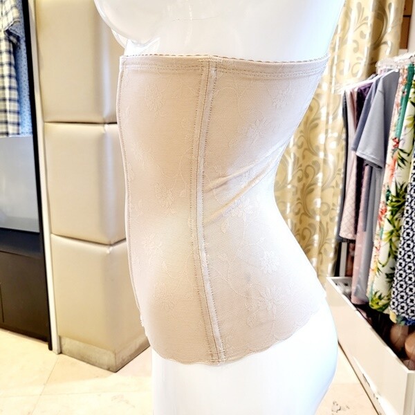 바디라인을 강하게 압박해주는 하드타입의 원단으로 전체적으로 바디라인을 슬림하게 잡아주며 복부에는 속싱을 넣어주어 복부를 강하게 압박해줍니다. 밑단과 가슴부분은 웨이브로 처리 된 햄라인을 사용하여여 테이프로 인한 압박이나 눌림현상이 없도록 설계되었습니다.