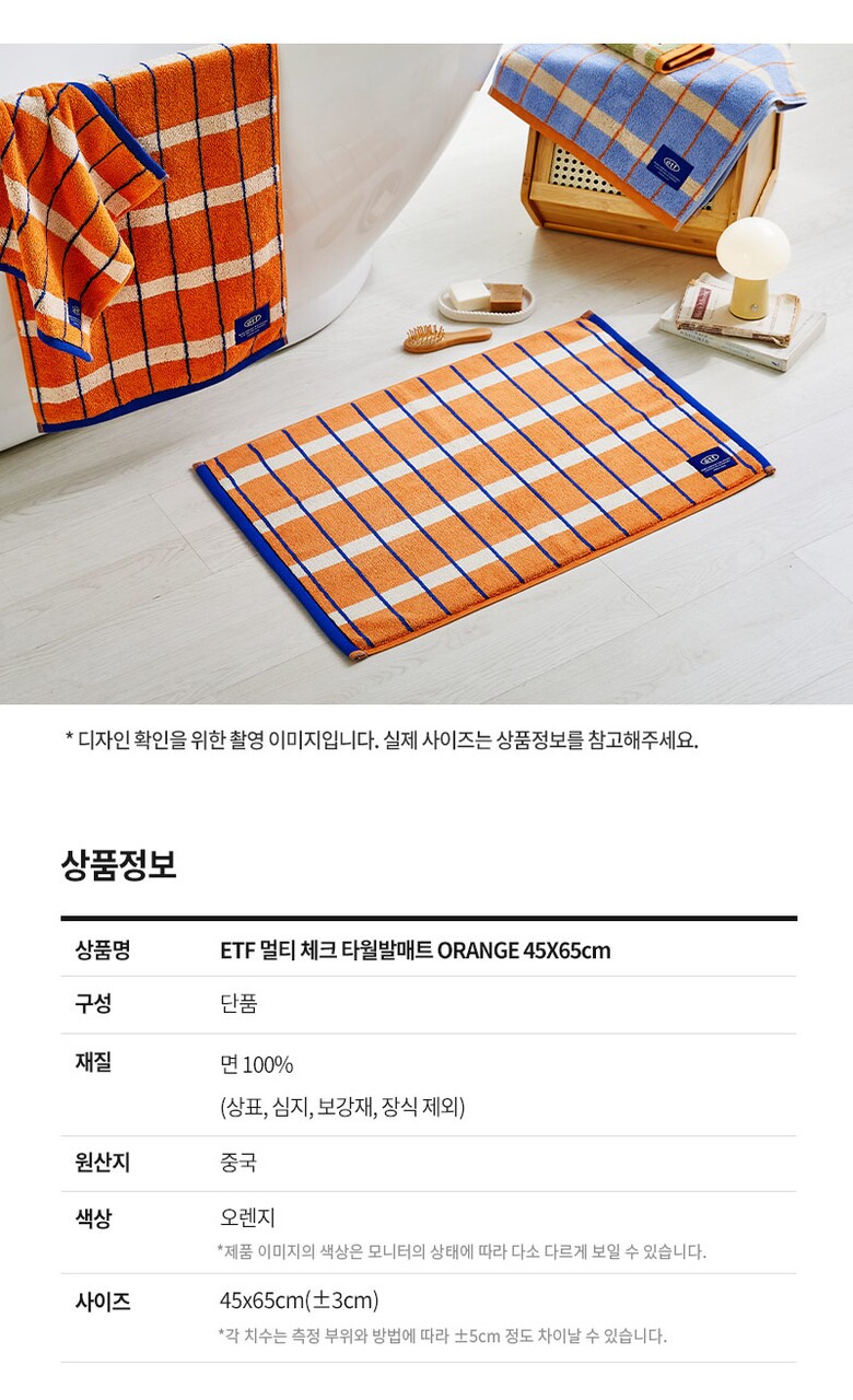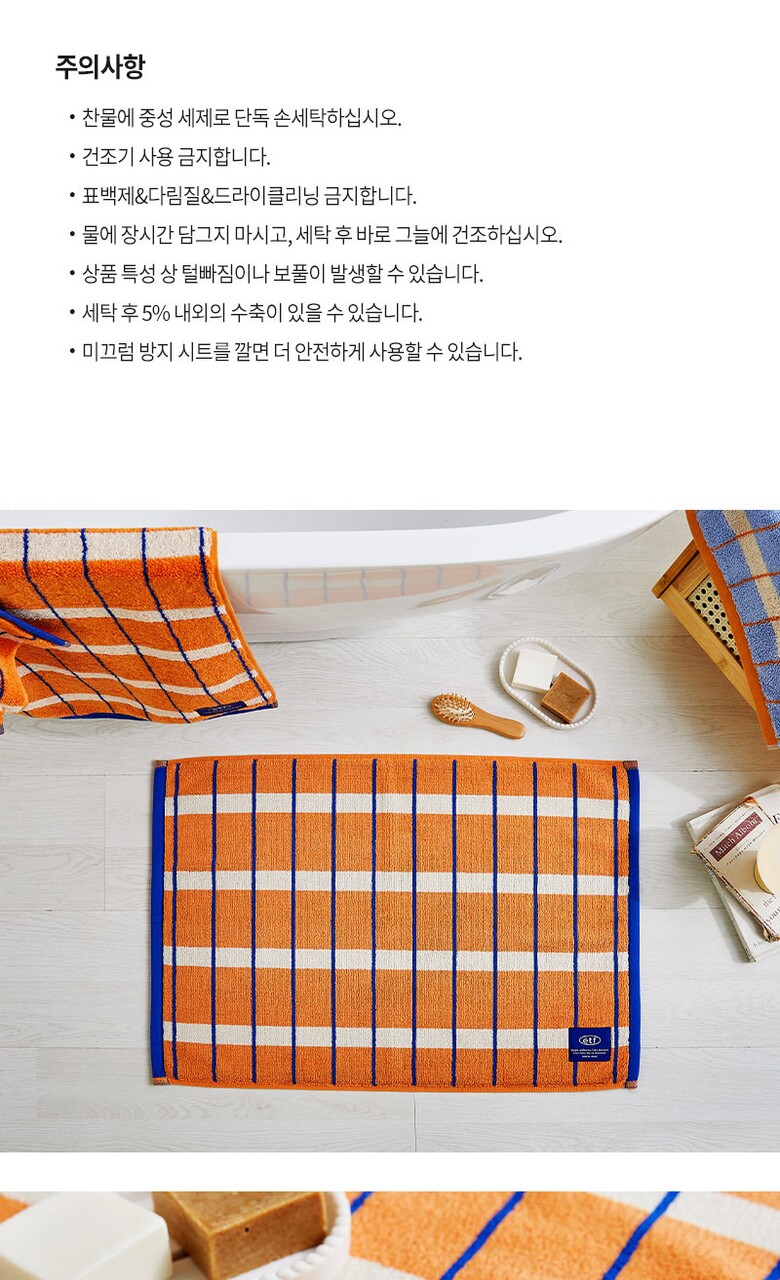 모던하우스 ETF 멀티 체크 타월발매트 ORANGE 45X65cm BG2025043