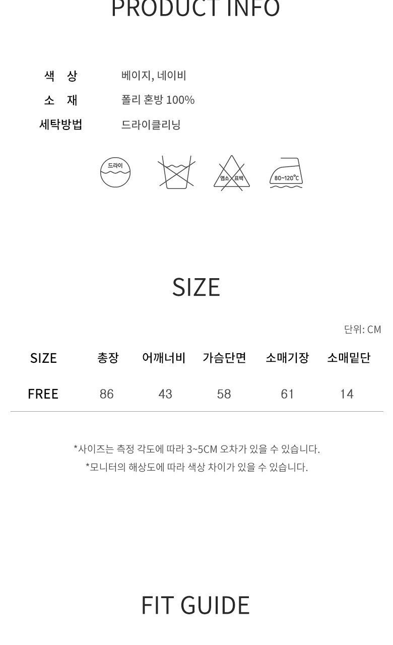 1. 제품 소재 (섬유의 조성 또는 혼용률을 백분율로 표시, 기능성인 경우 성적서 또는 허가서) | 상세페이지 참조 |