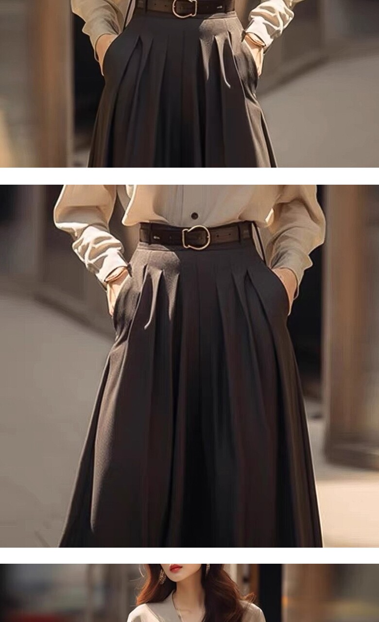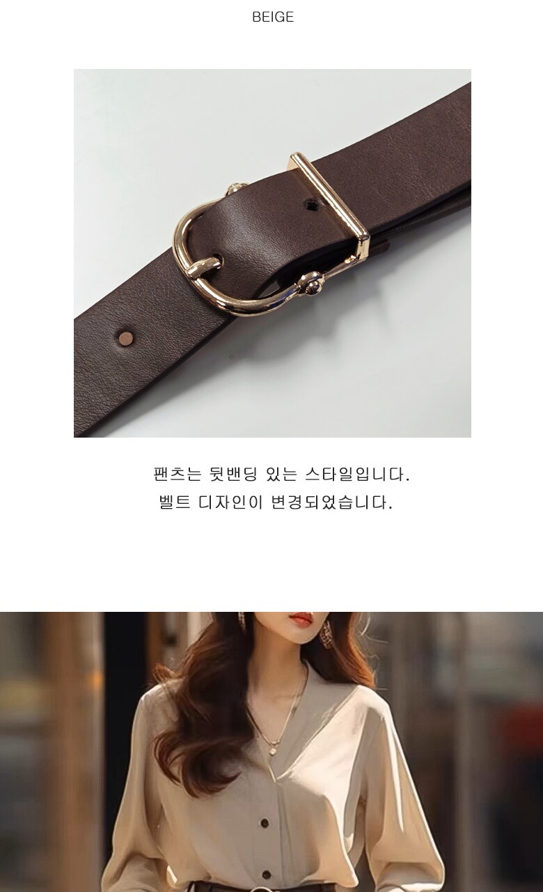 (예쎄) (3종SET)Y넥 솔리드 셔츠+뒷밴딩 스커트+벨트 (S5FSE007A)