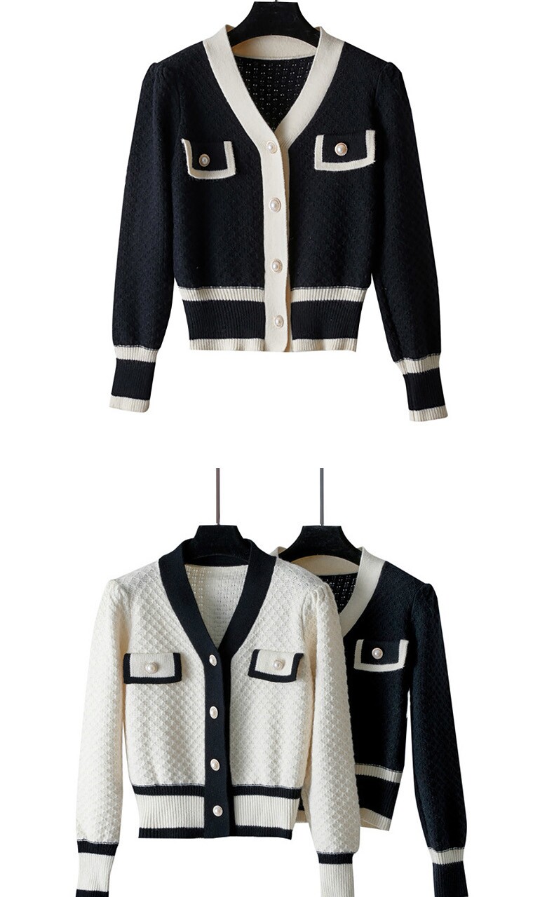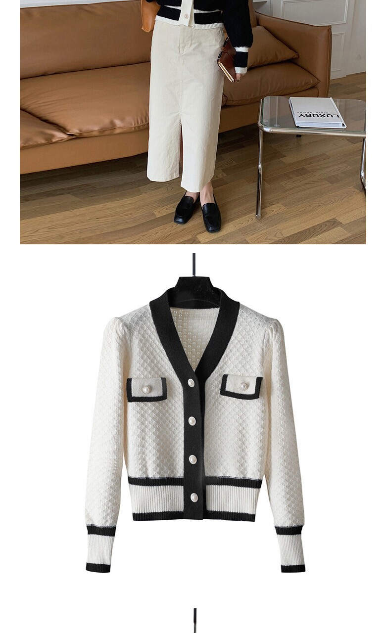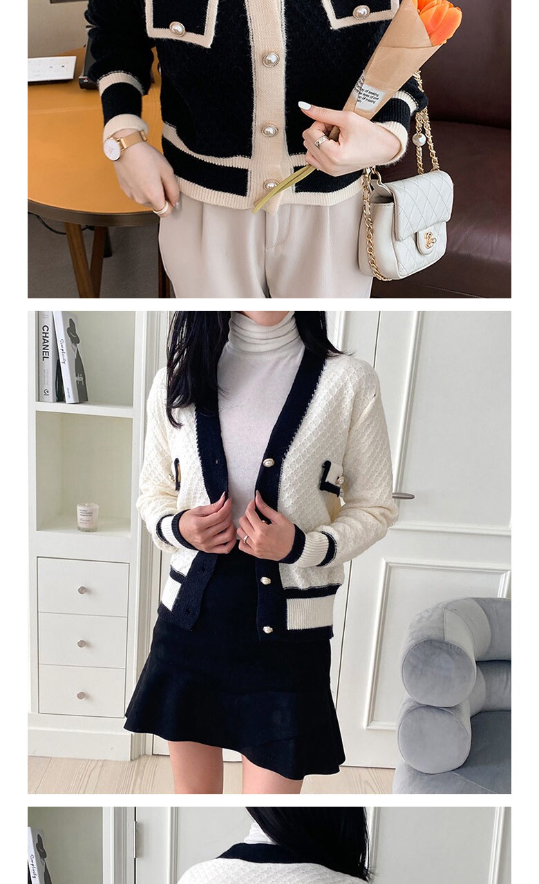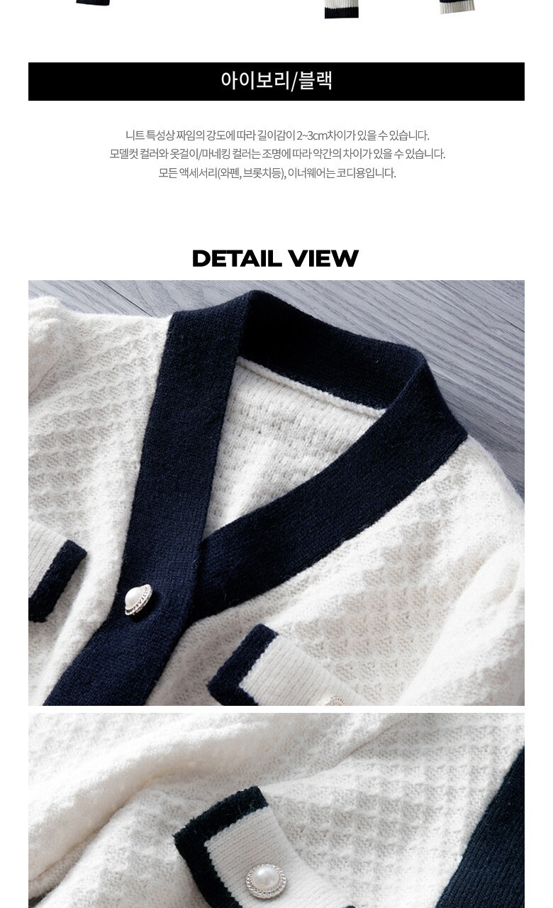 진주 버튼 배색 긴팔 가디건_O2508CD033C