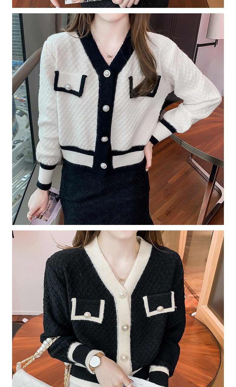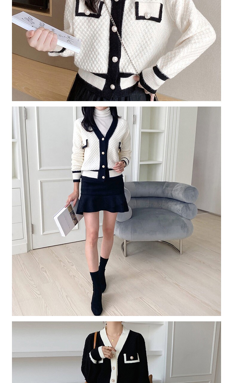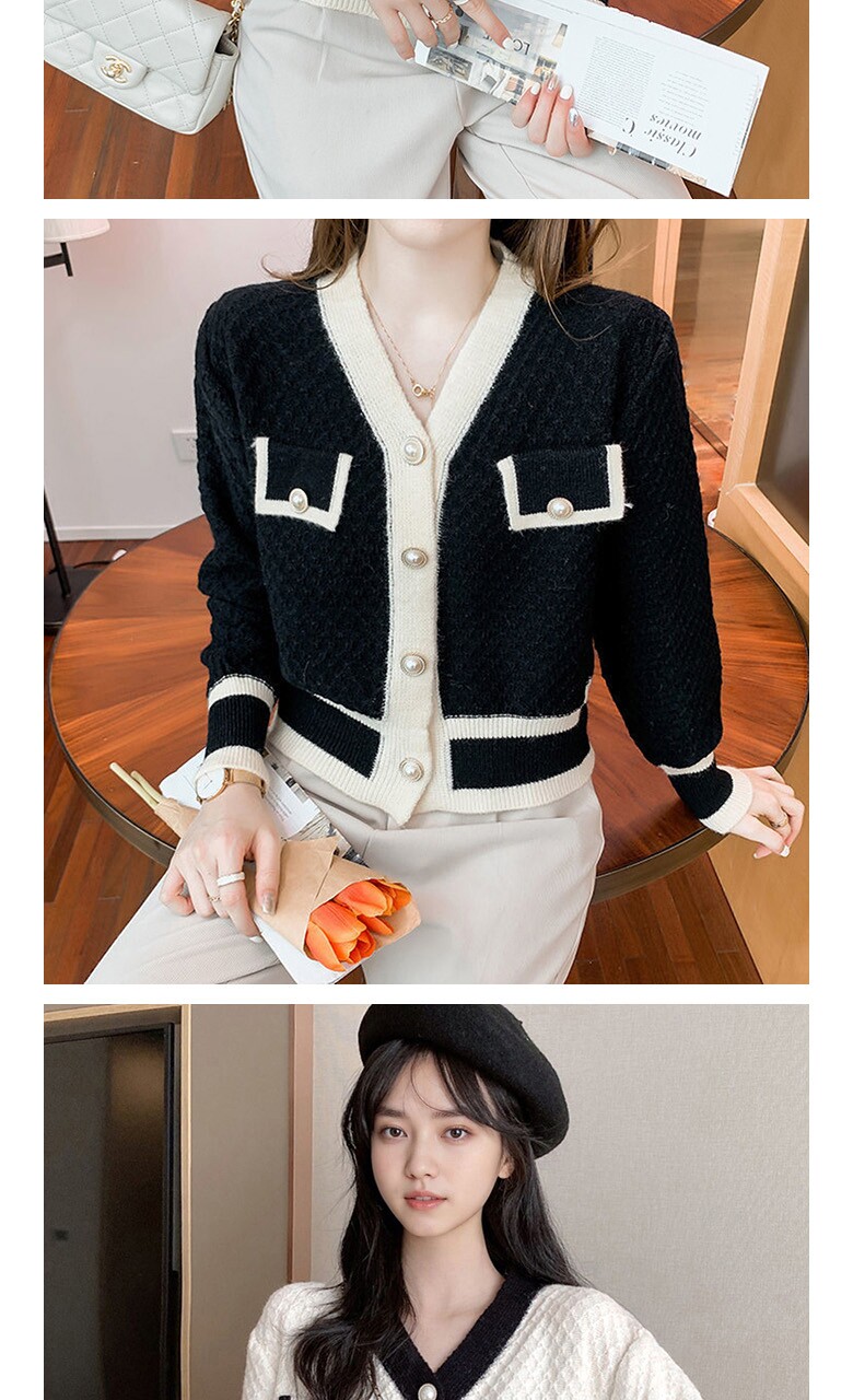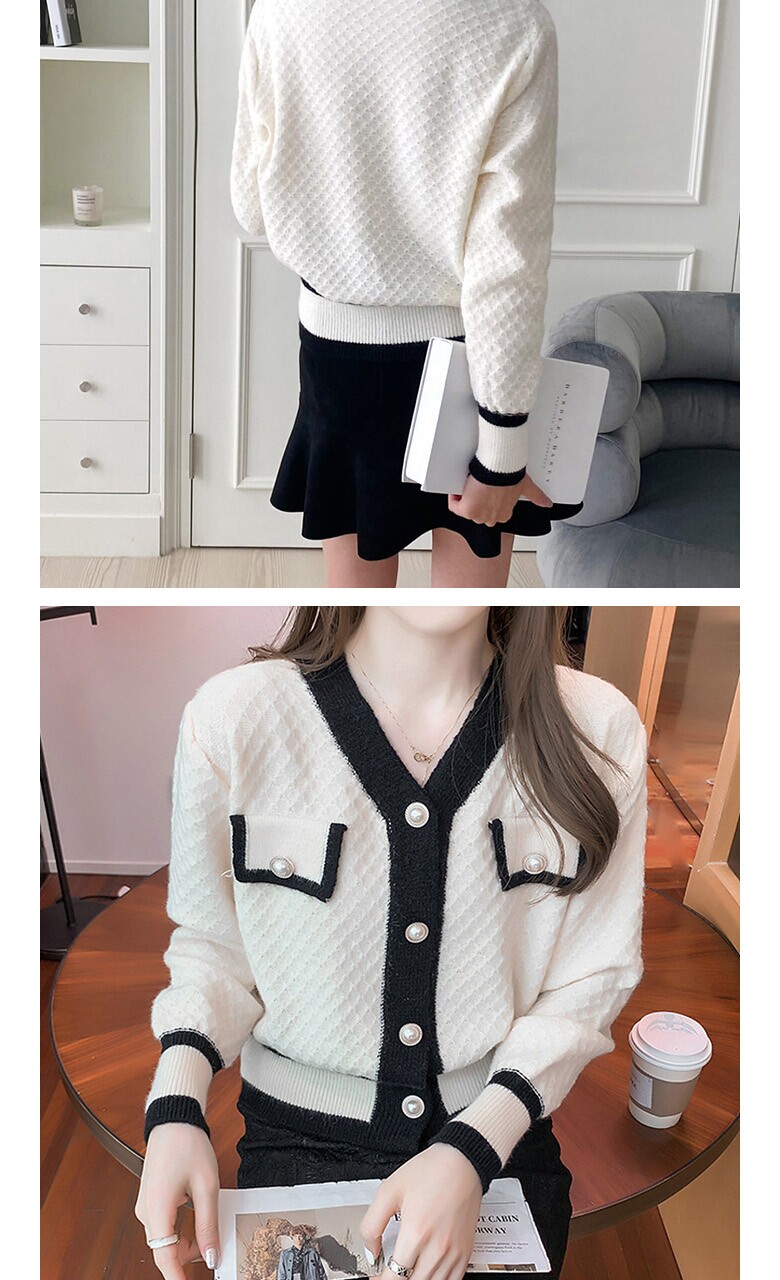 진주 버튼 배색 긴팔 가디건_O2508CD033C