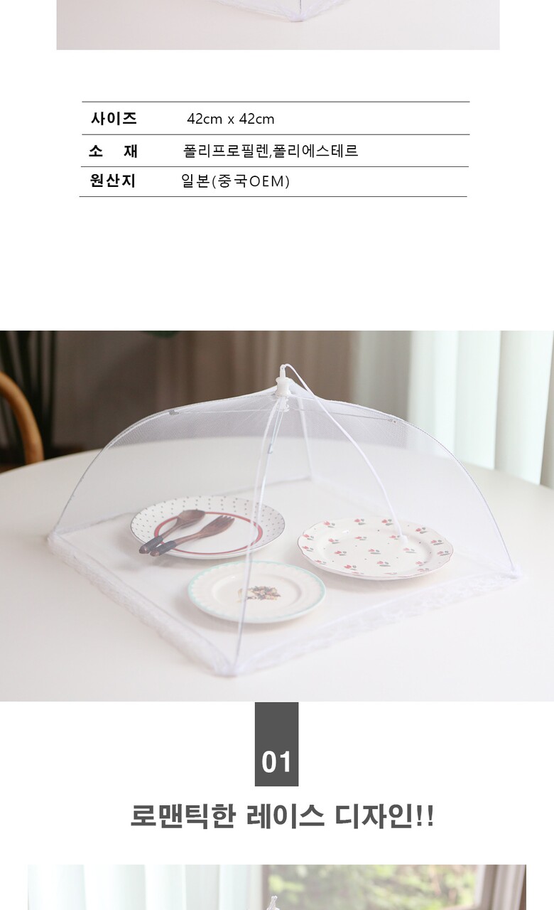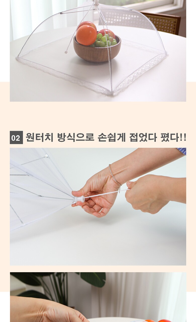 [2개세트] 카밀리아 레이스 커버 원터치 접이식 밥상보 음식 덮개