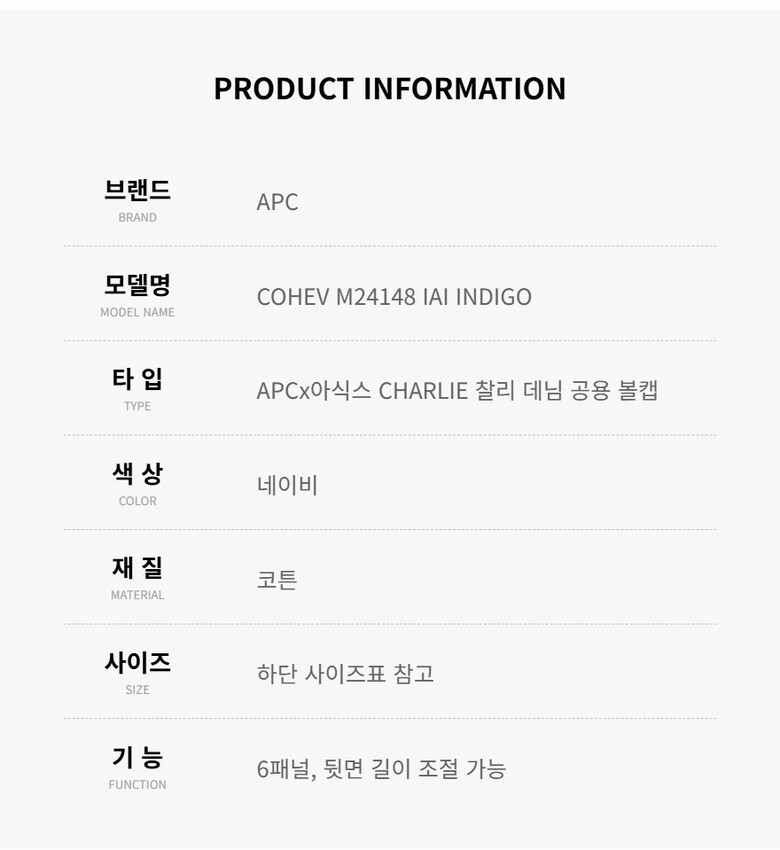 아페쎄 모자 COHEV M24148 IAI INDIGO APCx아식스 찰리 남성모자 여성모자 당일발송