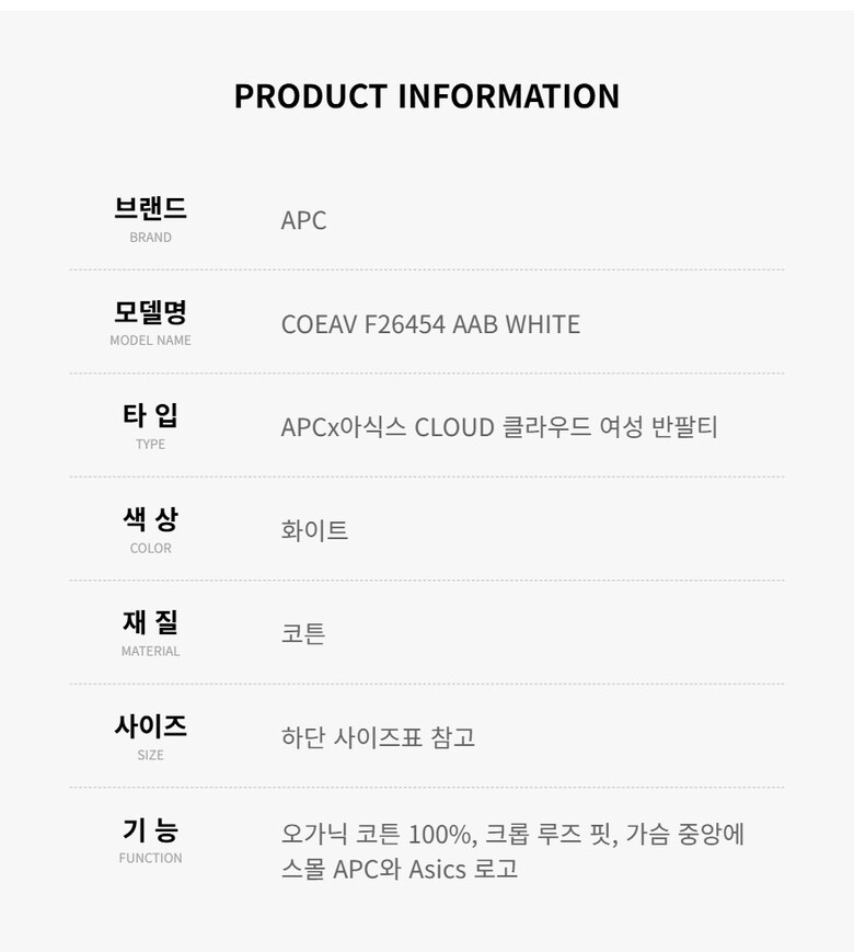 아페쎄 COEAV F26454 AAB WHITE APCx아식스 CLOUD 클라우드 여성 반팔티