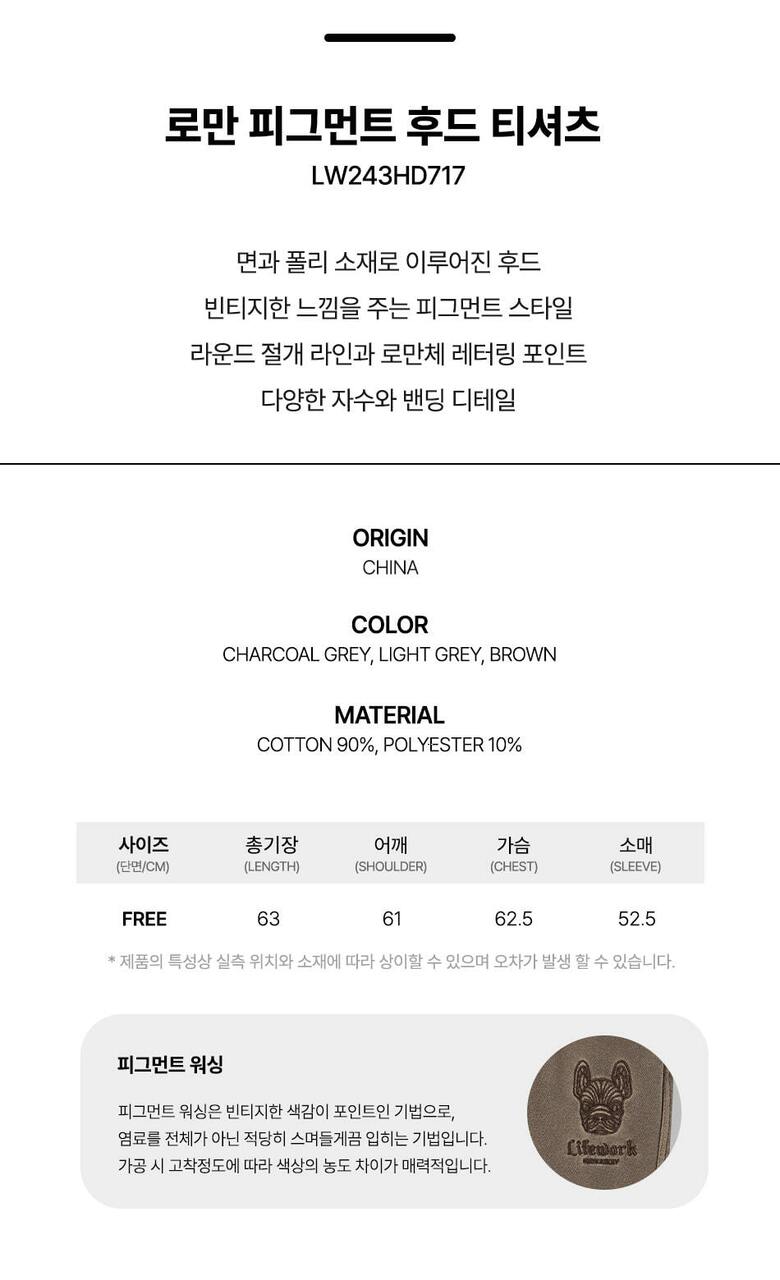 [라이프워크] 여성) 로만 피그먼트 후드 티셔츠 (LW243HD717-32)
