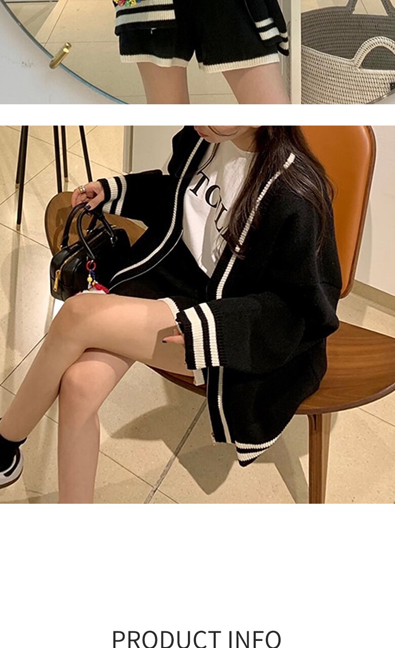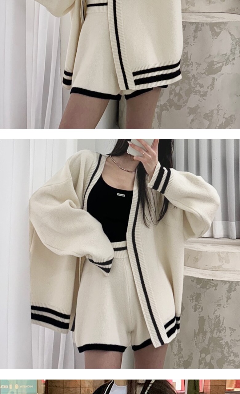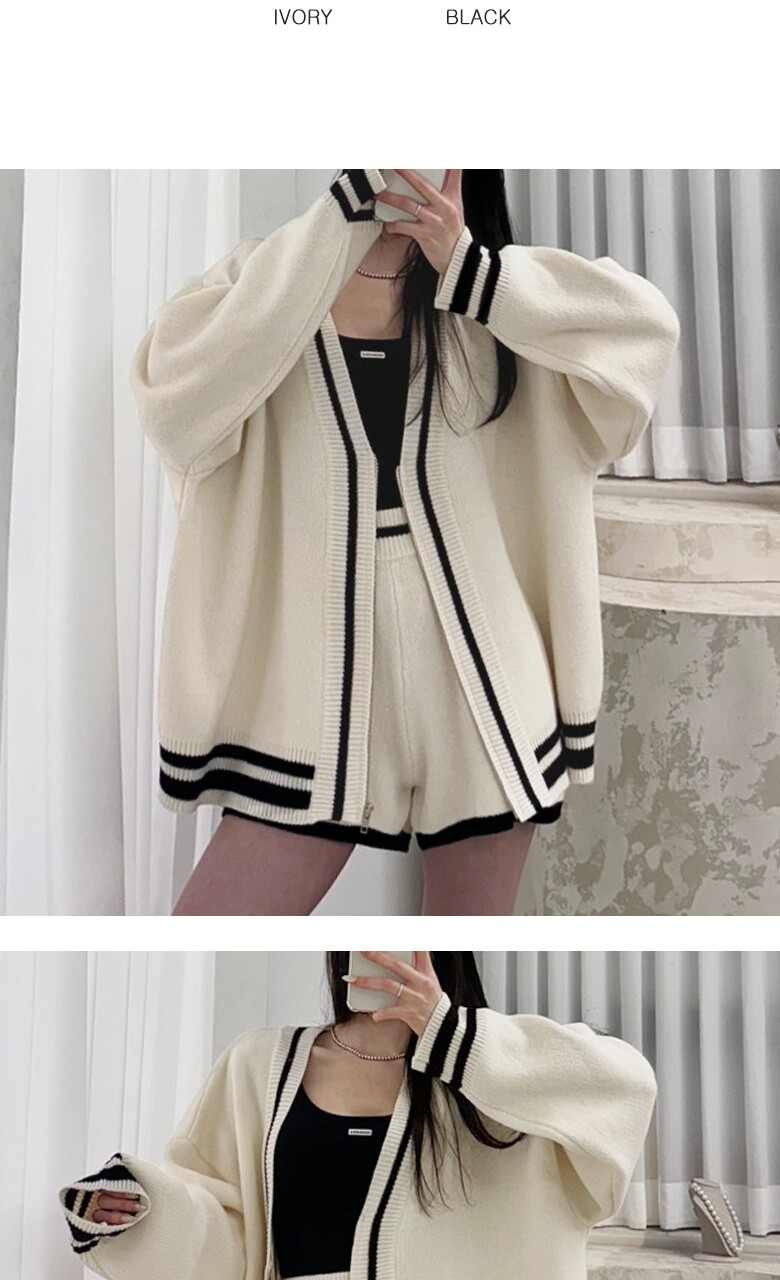 (귈림) (2종SET) 배색라인 집업 니트 가디건+숏팬츠(G5FSE012P)