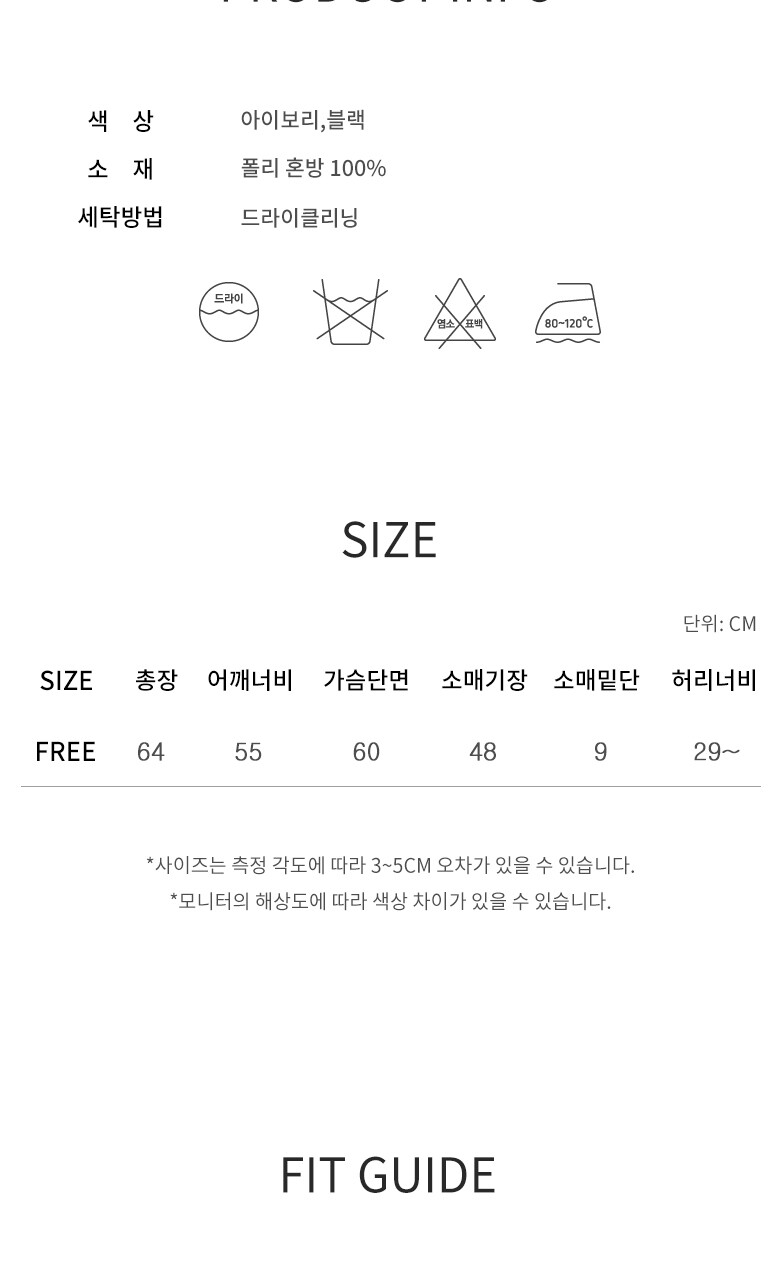1. 제품 소재 (섬유의 조성 또는 혼용률을 백분율로 표시, 기능성인 경우 성적서 또는 허가서) | 상세페이지 참조 |