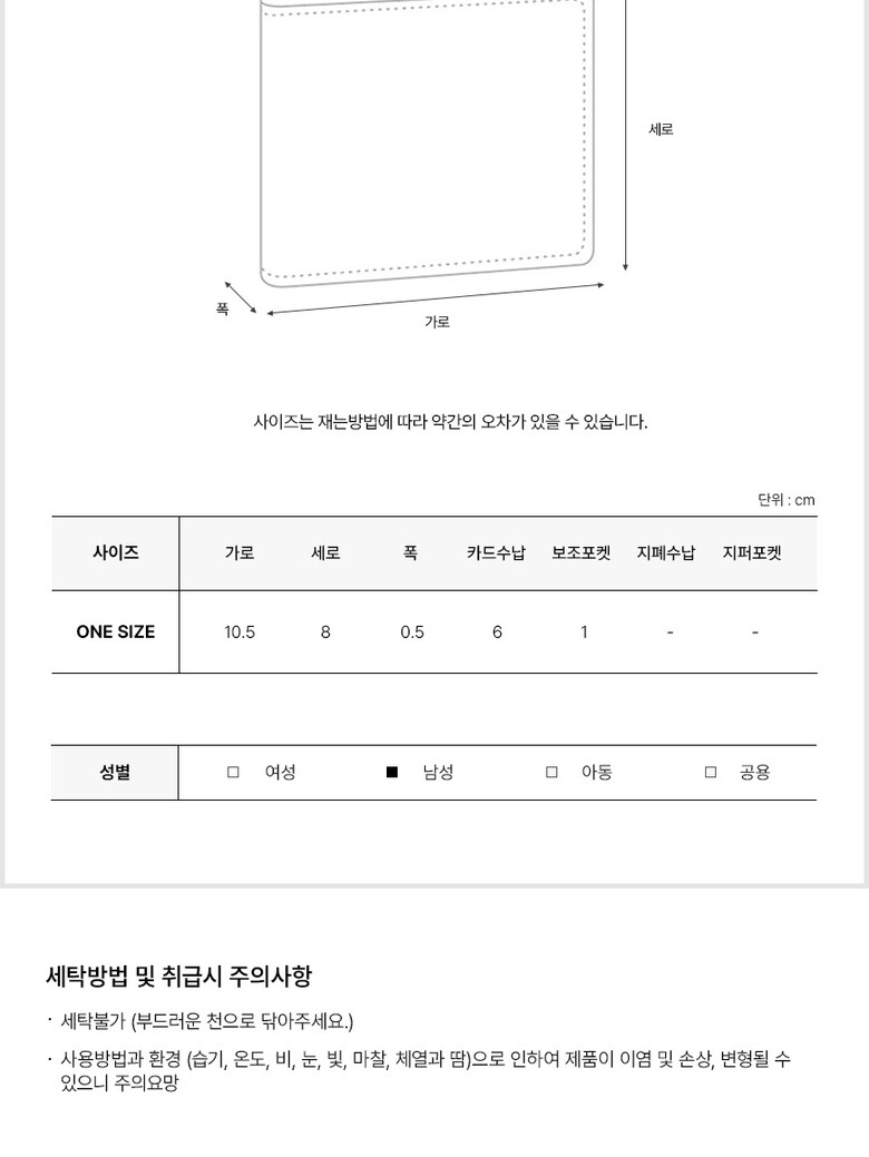 3. 치수 | 가로 10.5cm X 세로 8cm X 폭 0.5cm |