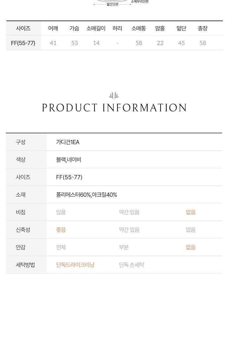 1. 제품 소재 (섬유의 조성 또는 혼용률을 백분율로 표시, 기능성인 경우 성적서 또는 허가서) | 폴리에스터60%,아크릴40% |