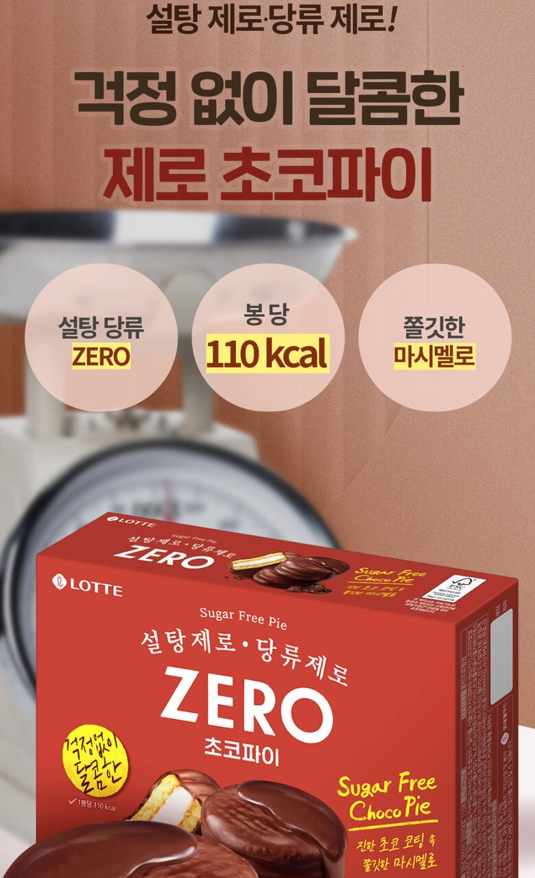 [롯데] ZERO 무설탕 초코파이/카카오 케이크 4곽 세트